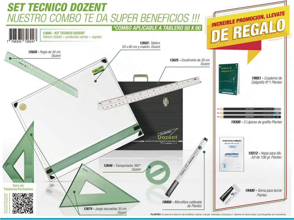 Set tablero Dozent 1 posición – 50 x 60 cm con 12 uiles