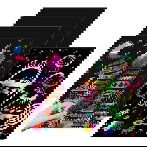 Cada papel con una divertida capa de color holográfico del arco iris oculta debajo del recubrimiento negro mate. Los colores brillantes de los paneles de arte de scratch se esconden debajo del recubrimiento, con el estilo de madera, puedes dibujar pinturas de colores, disfrutar de la diversión de garabatos.