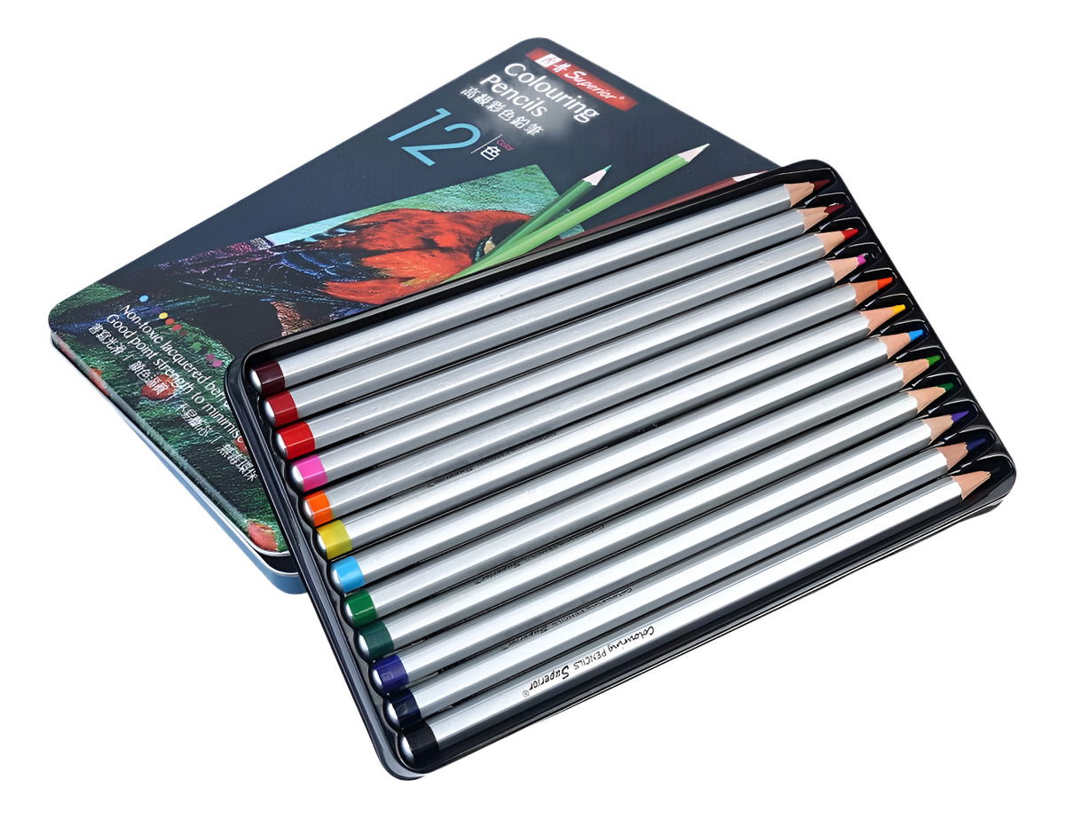 SET 12 LAPICES ACUARELABLES EN LATA - Excelente calidad, semi profesionales. - Ideal para artistas, ilustradores, comics, manga, etc. - Resistente Lata metalica para protegerlos. - Colores intensos - Dureza media, no requiere presionar con fuerza para pintar. - Acuarelables (se pueden mezclar con agua)