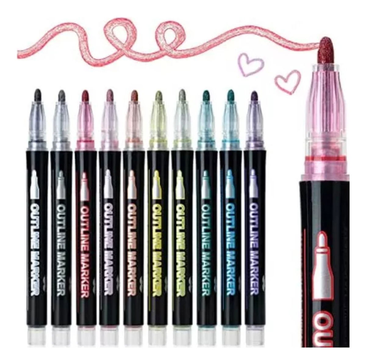 Marcadores Acrilicos Doble Línea para dibujar, pintar y escibir. de Color metálico con purpurina. LA FOTO REAL ES LA NUMERO 2 , SON EXACTAMENTE LOS COLORES QUE VIENE. MODO DE USO: 1. PRESIONE DOS VECES CON LA PUNTA HACIA ARRIBA 2. AGITE BIEN ANTES DE USAR 3. PRESIONE LA PUNTA HACIA ABAJO HASTA QUE LA TINTA CORRA 4. CIERRE INMEDIATAMENTE LUEGO DE USAR. Los marcadores de doble línea utilizan tecnología única que produce contornos para crear un hermoso efecto de doble color. La textura de metal plateado de la palabra está rodeada por un borde de color. La tinta es resistente al agua. Penetra fácilmente, cuanto más delgado sea el papel, más fácil penetrará. Por favor, prestá atención a colocar un trozo de papel debajo al dibujar. Podes dibujar trazos de doble línea en ropa, vidrio, piedras, cerámica y otros objetos, Pero el vidrio, las piedras, la cerámica y el papel oscuro no pueden mostrar efectos de doble línea, sino solo efectos fluorescentes. Colores surtidos perfectos para planificador, subrayado, resaltado, diario, calendario, cuaderno, pintura, escritura, colorear, marcador, manga, gráfico, correcciones o ilustración de notas de codificación de colores, para colorear patrones complicados Punta de cincel que no se deshilacha, la parte de la punta es suave, duradera y fuerte, Tinta de secado rápido, puede hacer detalles y relleno.