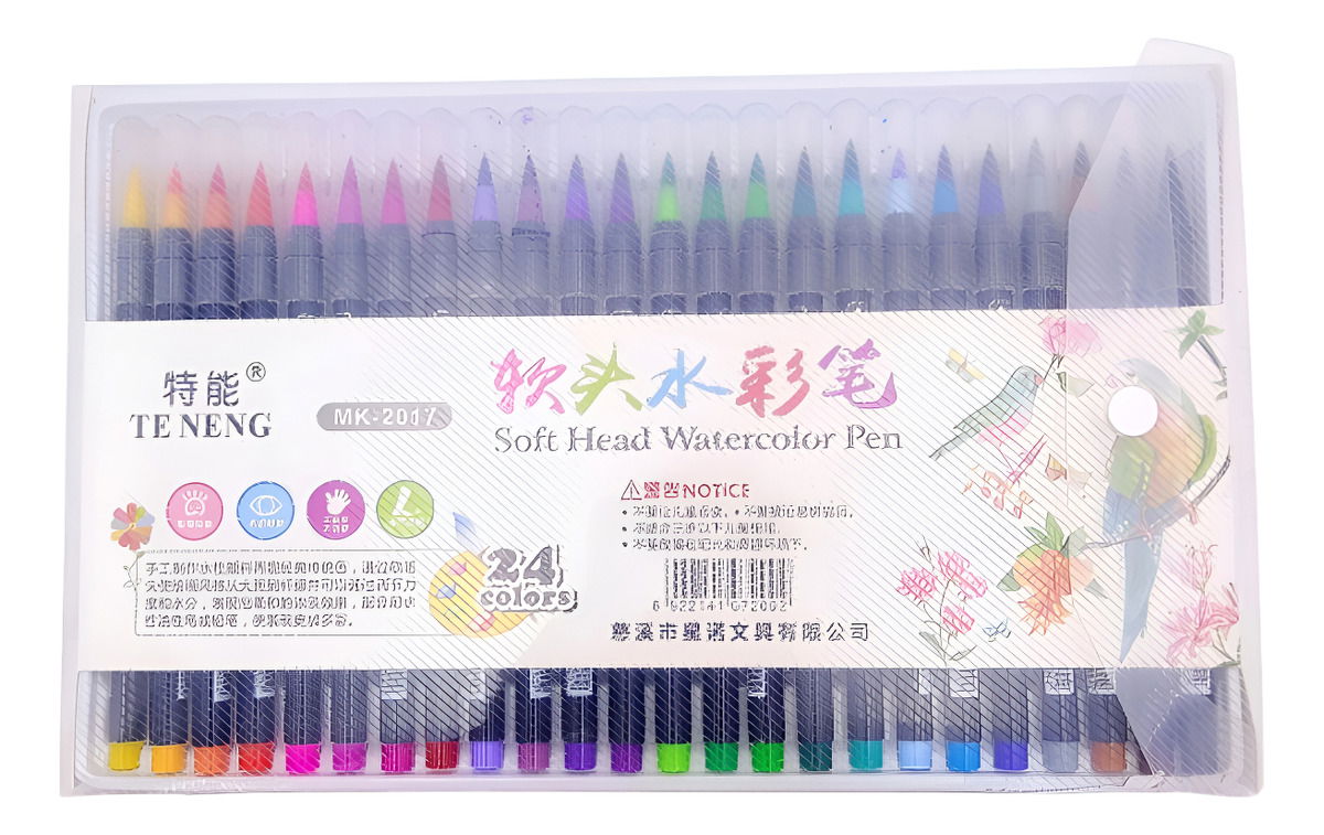 SET X24 MARCADORES ACUARELABLES CON PUNTA TIPO PINCEL SUAVE - ACUARELABLES BRUSH - PUNTA PINCEL SUAVE - Punta de 4 a 0 mm (cónica) - Presentados en caja organizadora de acetato - Medidas del packaging: 18,50 x 30 cm -24 colores brillantes de pigmentos vibrantes, acuarelables. -Ideales para ilustración, pintura y dibujo, diseño, caligrafía artística -lettering-, manga, sketching, libros para colorear, o cualquier ámbito de las artes plásticas y el diseño -Su tinta acuarelable permite transformar los pigmentos del marcador en acuarelas. Activa el marcador acuarelable sobre una hoja de gramaje para acuarela (300 gr aprox), utilizando un pincel de agua-waterbrush-, o un pincel regular mojado en agua, pasando el pincel sobre los trazos coloreados, y logra originales y únicos efectos de acuarela, gradientes, mezcla de colores y texturas. Con estos marcadores podrás lograr los efectos de una verdadera acuarela. -No tóxicos, libres de ácido, inodoros, fáciles de lavar. Para todas las edades. Principiantes / adultos / niños / artistas. • mencho Libreria Técnica y Artística • Ubicados en el barrio de abasto, a tres cuadras del shopping ofrecemos productos de primera calidad en artículos de librería al mejor precio. * Su compra esta protegida por Mercado Pago oferte sin miedo * _______________________________________________________________ • Medios de transporte cercanos • - Colectivos: 64 99 106 109 111 188 - Lineas de SUBTE: Linea B y D - Tren Sarmiento estación Once _______________________________________________________________ • Formas de entrega • • ENVÍOS A TODO EL PAÍS • • Envíos en CABA y GBA por moto o mensajería • Mercado Envíos • Por correo OCA • Por Micro o Expresos _______________________________________________________________ • Formas de pago • • Mercado Pago • Mercado Point
