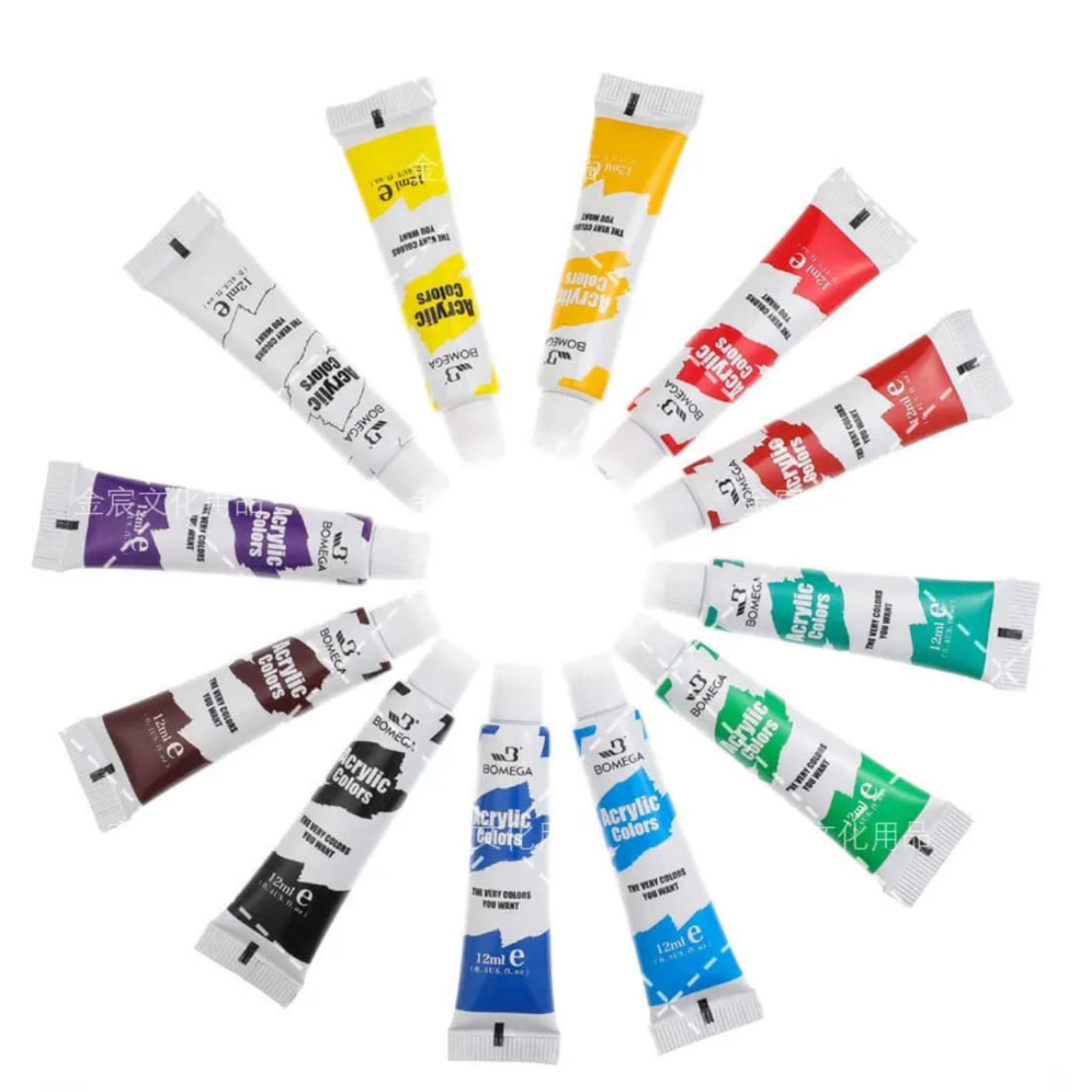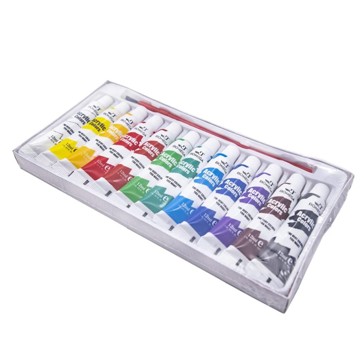 2 Pomos/Colores de pintura de 12ML + pincelEl Set de 12 acrílicos en pomo de 12 ml de Mencho librería es una herramienta esencial para artistas, estudiantes y aficionados a la pintura.