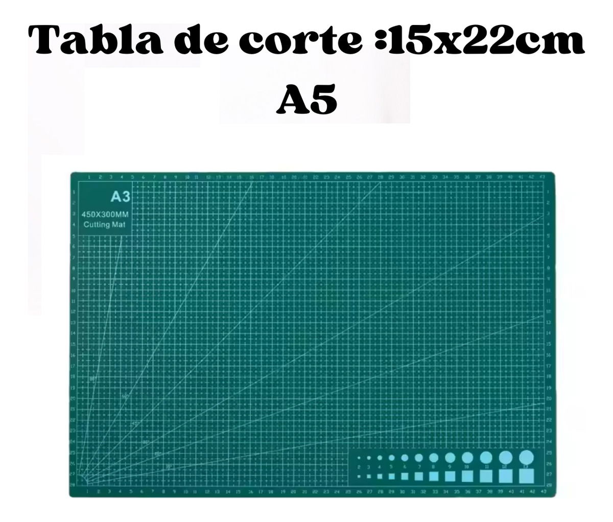 Producto: Base De Corte A5 15x22cm + Regla (NO ES DE ALUMINO , PERO ES RESISTENTE) 15cm + Cutter Bisturí + 10 Navajas ______________________________________________________ Descripción: - Descubre nuestro kit esencial para creatividad, este conjunto incluye una base de corte A5 de 15x22 cm, una regla 15 cm, un cutter bisturí con navajas de repuesto yproporcionando herramientas fundamentales para tus proyectos. La base de corte, de forma rectangular y fabricado en PVC de 3 capas, es perfecto para manualidades, arte y más. Con medidas precisas y características como ser autocurativo y reversible, este kit ofrece la base ideal para expresar tu creatividad con comodidad y precisión. ¡Optimiza tu espacio de trabajo con estas herramientas de calidad! Características: _ Base De Corte * Material PVC * Espesor 3 mm * Cantidad De Capas 3 * No Deja Huella De Corte. * Antiderrapante. * Doble Vista. _ Cutter Exacto Bisturí * Corte Exacto * Material Metal * Tiene 10 Navajas De Repuesto. * Corte De Precisión. _ Cutter Circular Rotativo. * Ancho De La Hoja 45 mm * Material Del Mango Plástico. * Tiene 3 Cuchilla De Repuesto. * Traba De Seguridad. _ Regla De 15 cm RESITENE PERO NO DE METAL • Mencho Libreria Técnica y Artística • Ubicados en el barrio de abasto, a tres cuadras del shopping ofrecemos productos de primera calidad en artículos de librería al mejor precio. * Su compra esta protegida por Mercado Pago oferte sin miedo * _______________________________________________________________ • Medios de transporte cercanos • - Colectivos: 64 99 106 109 111 188 - Lineas de SUBTE: Linea B y D - Tren Sarmiento estación Once _______________________________________________________________ • Formas de entrega • • ENVÍOS A TODO EL PAÍS • • Envíos en CABA y GBA por moto o mensajería • Mercado Envíos • Por correo OCA • Por Micro o Expresos _______________________________________________________________ • Formas de pago • • Mercado Pago • Mercado Point