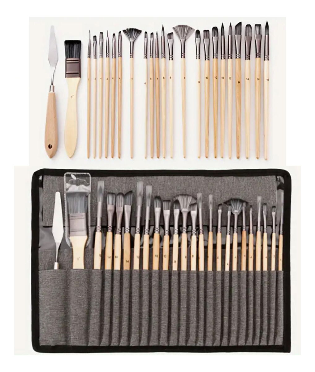 Kit 25 Pinceles Artista Pintura Espátula + Estuche