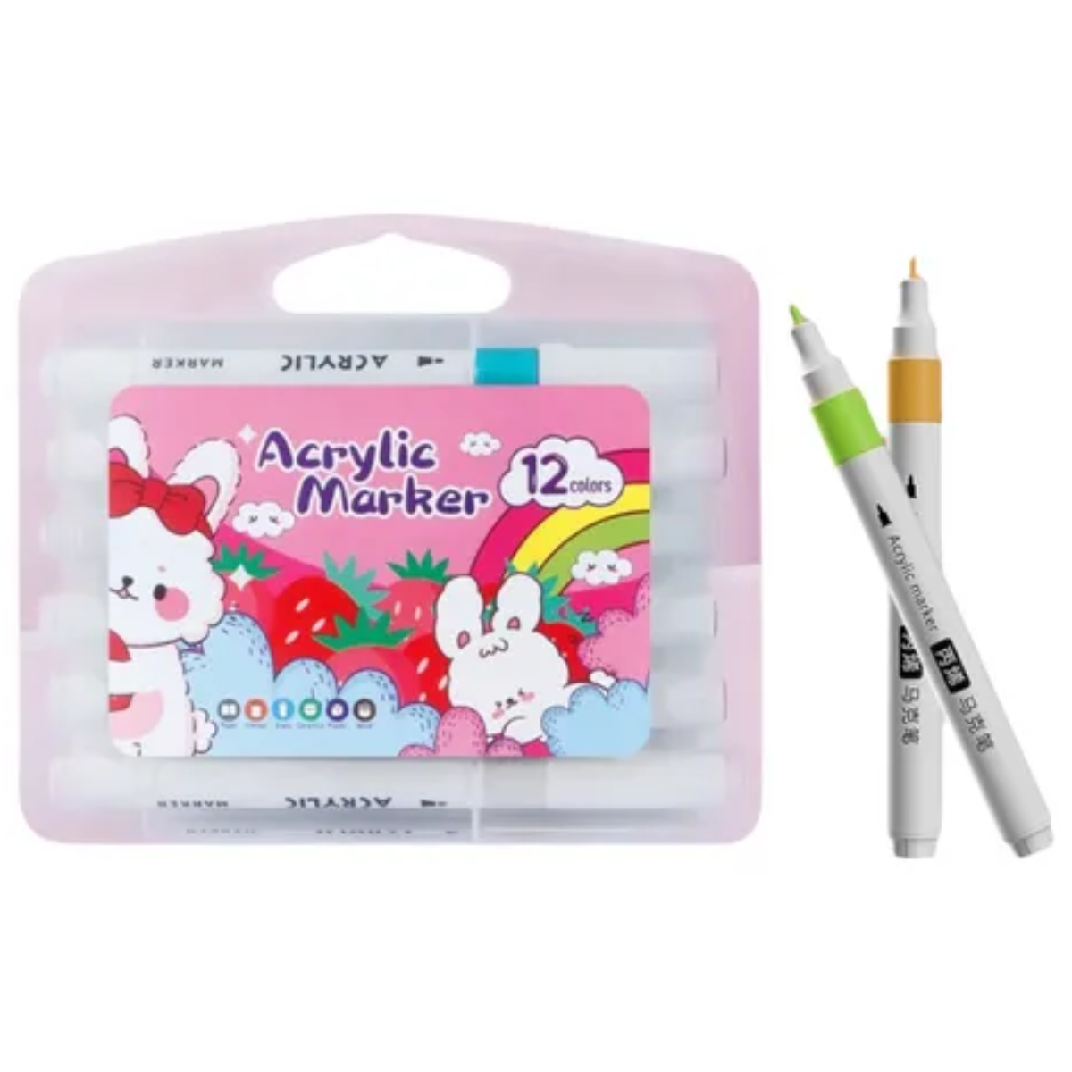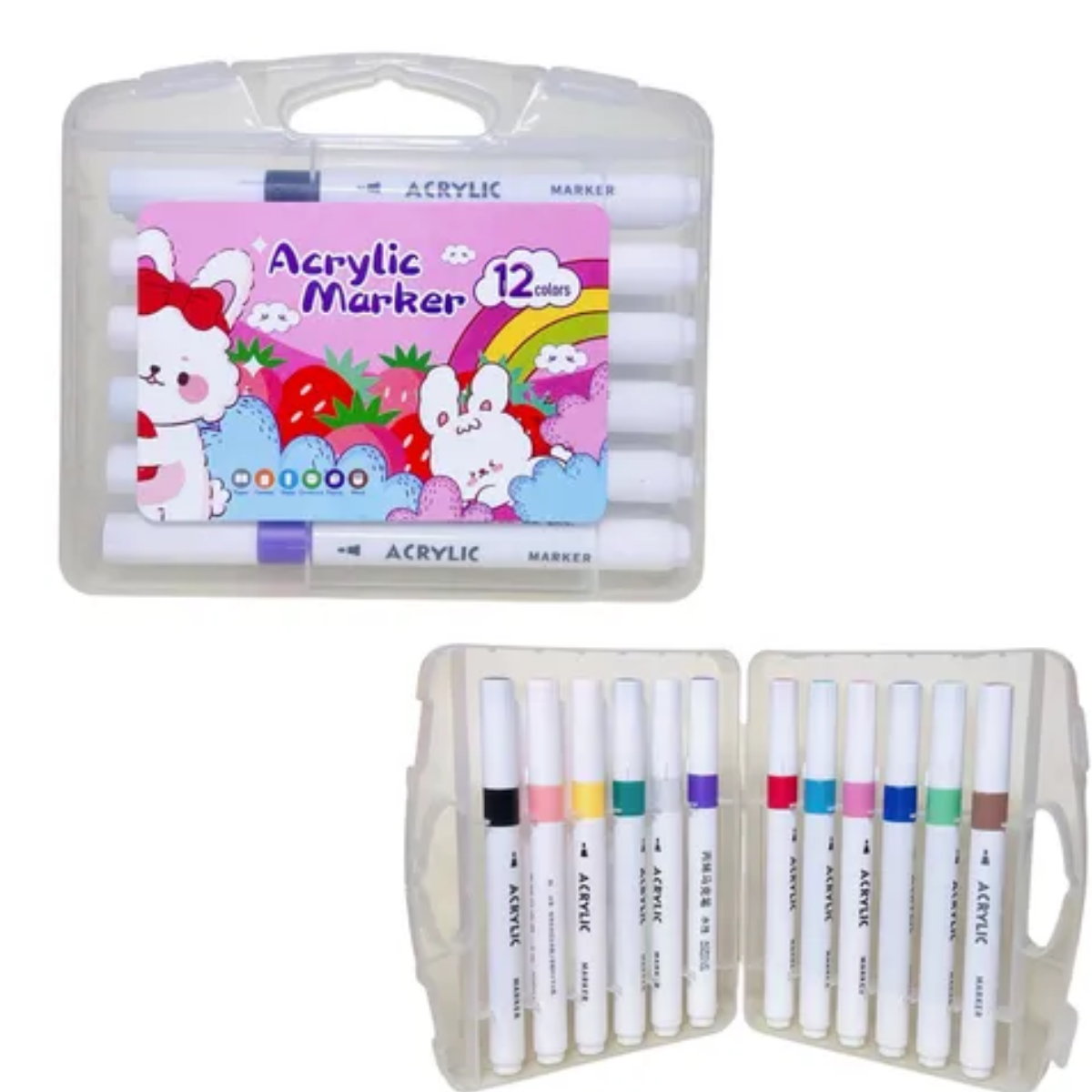 Los Marcadores Acrílicos Profesionales son la herramienta ideal para artistas, estudiantes y aficionados a la manualidad que buscan calidad y versatilidad en sus proyectos. Con un diseño práctico en valija, este set de 12 unidades ofrece una amplia gama de colores vibrantes que permiten una expresión creativa sin límites. Su punta redonda de 3 mm proporciona un trazo preciso, perfecto para detalles finos o áreas más amplias.
