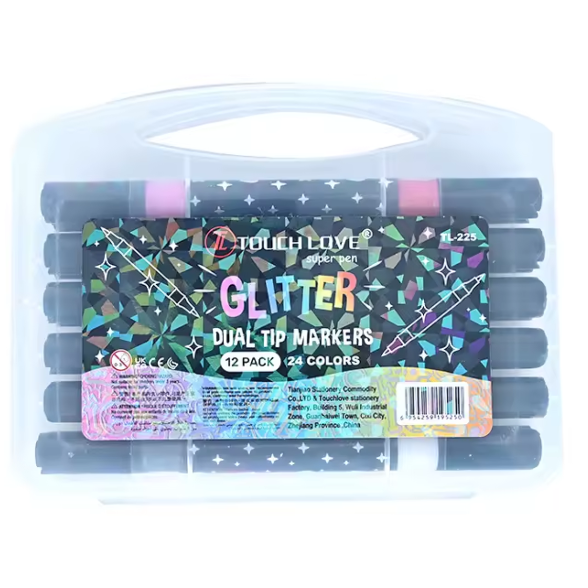 Descubre el maravilloso mundo del lettering con los Marcadores Glitter Punta Pincel Lettering Brillantina de Mencho Librería. Este set cuenta con 12 marcadores que transformarán tus proyectos creativos en obras de arte brillantes. Con su diseño único y chispeante, cada trazo cobrará vida en papel, cartulina y otras superficies lisas, asegurando que cada detalle resalte con un toque especial.