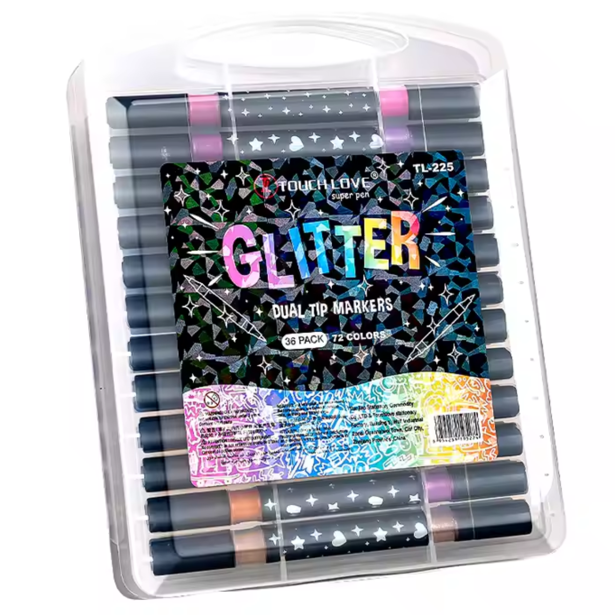 Descubre el maravilloso mundo del lettering con los Marcadores Glitter Punta Pincel Lettering Brillantina de Mencho Librería. Este set cuenta con 36 marcadores que transformarán tus proyectos creativos en obras de arte brillantes. Con su diseño único y chispeante, cada trazo cobrará vida en papel, cartulina y otras superficies lisas, asegurando que cada detalle resalte con un toque especial.