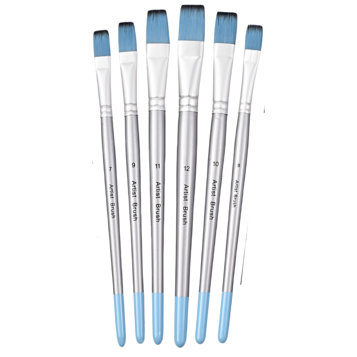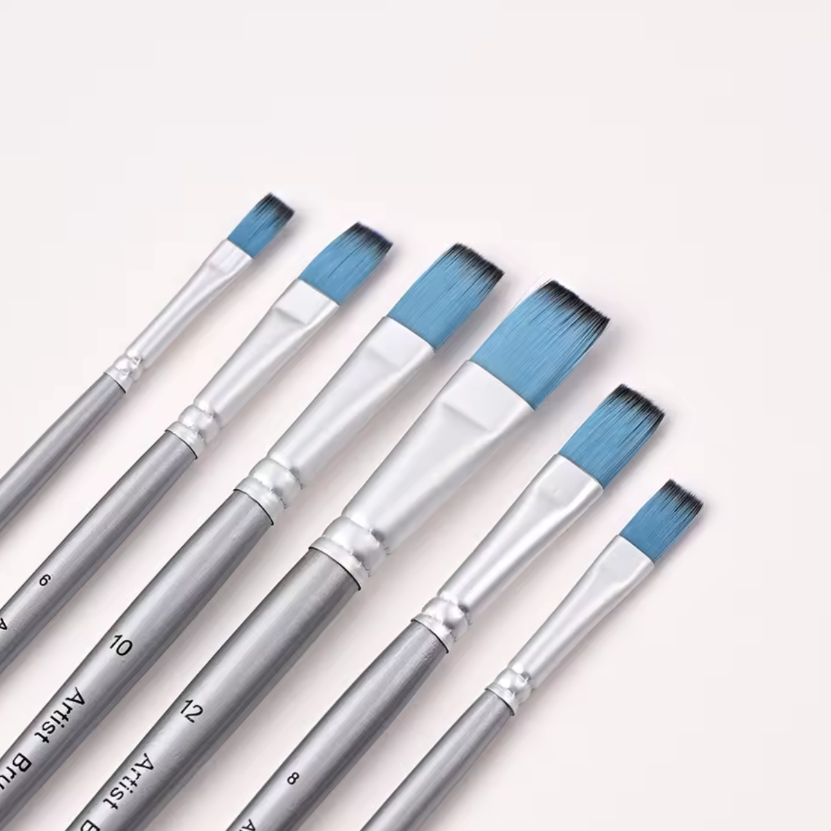 Pack de 6 pinceles artisticosModelo: Chatos Numeros: 2,4,6,8,10,12Largo aproximado: 22cmPresentado en carton con bolsa transparente