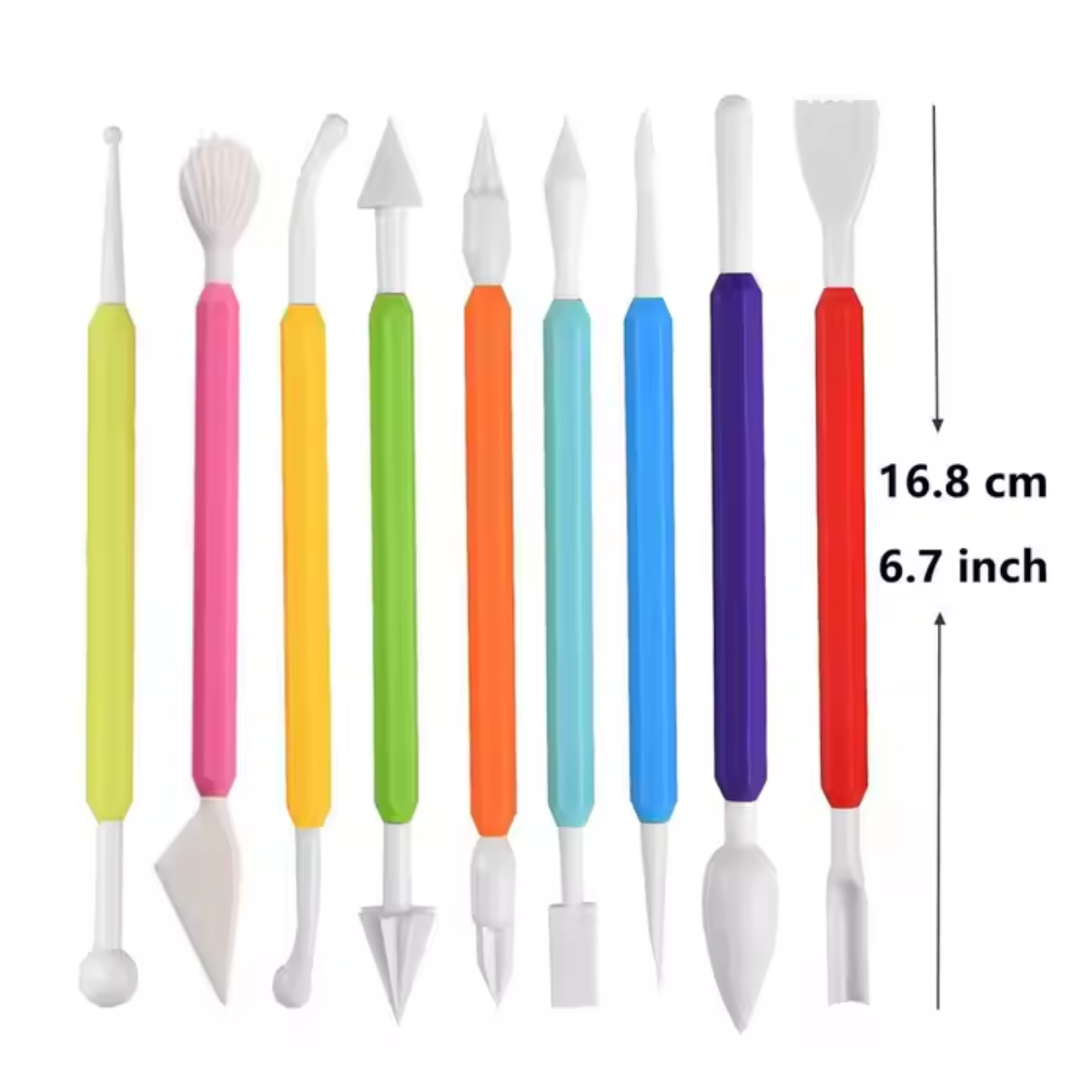 Descubre la herramienta perfecta para llevar tus proyectos de repostería decorativa y modelado a un nuevo nivel. Este set de estecas plásticas de la marca Mencho librería incluye 9 piezas diseñadas especialmente para trabajar con porcelana fría y pasta para modelar. Cada herramienta está fabricada con plástico resistente, lo que garantiza durabilidad y precisión en cada creación.
