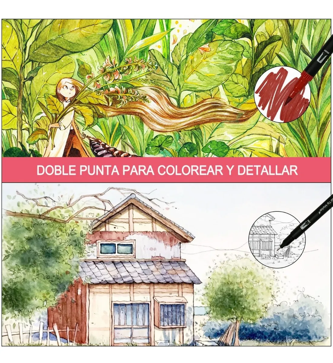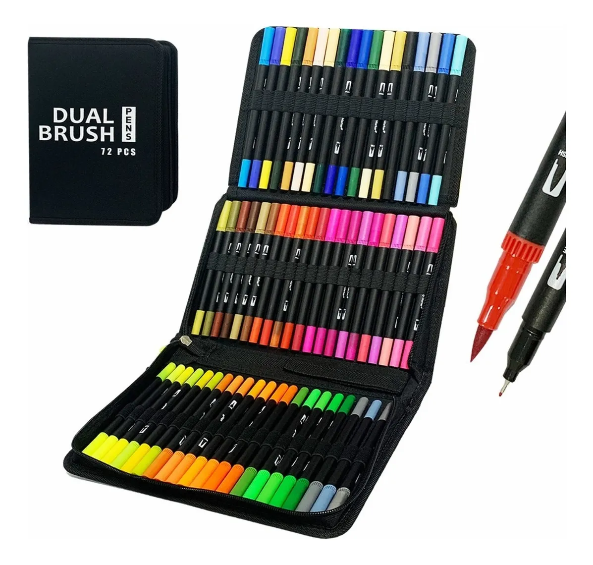 72 colores de plumas de arte Set, de doble punta fina y flexible punta de la pluma del cepillo, marcadores a base de agua para colorear la caligrafía, para los niños de dibujo, proveedor de la escuela del niño. Cantidad de colores: 72 colores Tipo: Marcador de arte de doble punta Tamaño de la línea: 0,35-3mm Estilo: 1. Dual Tips acuarela 2. Pinceles 3. Rotulador de dibujo 4. Bolígrafo para manga 5. Fineliner de dibujo 6. Set de pintura 7. Rotulador de letras Sobre este artículo: 1. Lápices de pincel de doble punta flexible, doble valor: 72 colores de marcadores de arte de doble punta son un conjunto de lápiz de pincel perfecto con punta ultra fina para su próxima obra maestra. Punta fina de 0,4mm y punta de pincel de 1-6mm para líneas gruesas y finas. Funciona bien sin saltos ni problemas de flujo de tinta. 2. 72 colores bonitos, durabilidad y larga duración: Este juego completo de rotuladores artísticos de doble pincel viene con 60 opciones de colores únicos y vibrantes para elegir. Ideal para libros de colorear para adultos, dibujar, colorear, garabatear y casi cualquier otra cosa. 3. Seguro y de secado rápido: Tintas de tinte a base de agua, sin olor, sin fugas, no tóxico y libre de ácido. Los colores pueden ser dispersados y mezclados con agua. No hay necesidad de preocuparse por las manchas y borrones. 4. Marcadores versátiles, mantengan la ordenación: Ideal para niños, libros de colorear para adultos, dibujar, colorear, garabatear, escribir y ser creativo de una manera divertida y hábil. Mantenga sus rotuladores organizados en el contenedor de la bolsa de lona incluida. 5. Bien empaquetado: Nuestros rotuladores de doble punta vienen con un estuche duradero que tiene ranuras para organizar todos los colores.