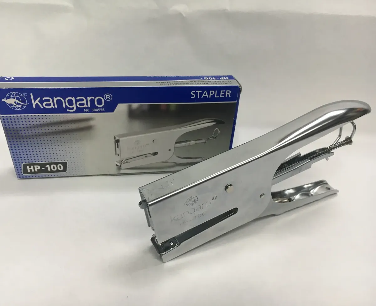 La Abrochadora Kangaro HP 100 es una herramienta esencial para cualquier oficina o espacio de trabajo. Diseñada para utilizar broches N° 10, esta abrochadora manual de tipo pinza está fabricada en metal, lo que garantiza su durabilidad y resistencia. Ideal para grapar hasta 20 hojas de papel a la vez, es perfecta para mantener tus documentos organizados y en orden. Su tamaño compacto y su capacidad de grapas N° 10 la hacen fácil de manejar y almacenar. Ten en cuenta que las imágenes de ambientación pueden mostrar otros objetos que no están incluidos en la compra. La Abrochadora Kangaro HP 100 es la solución eficiente y confiable para todas tus necesidades de grapado.