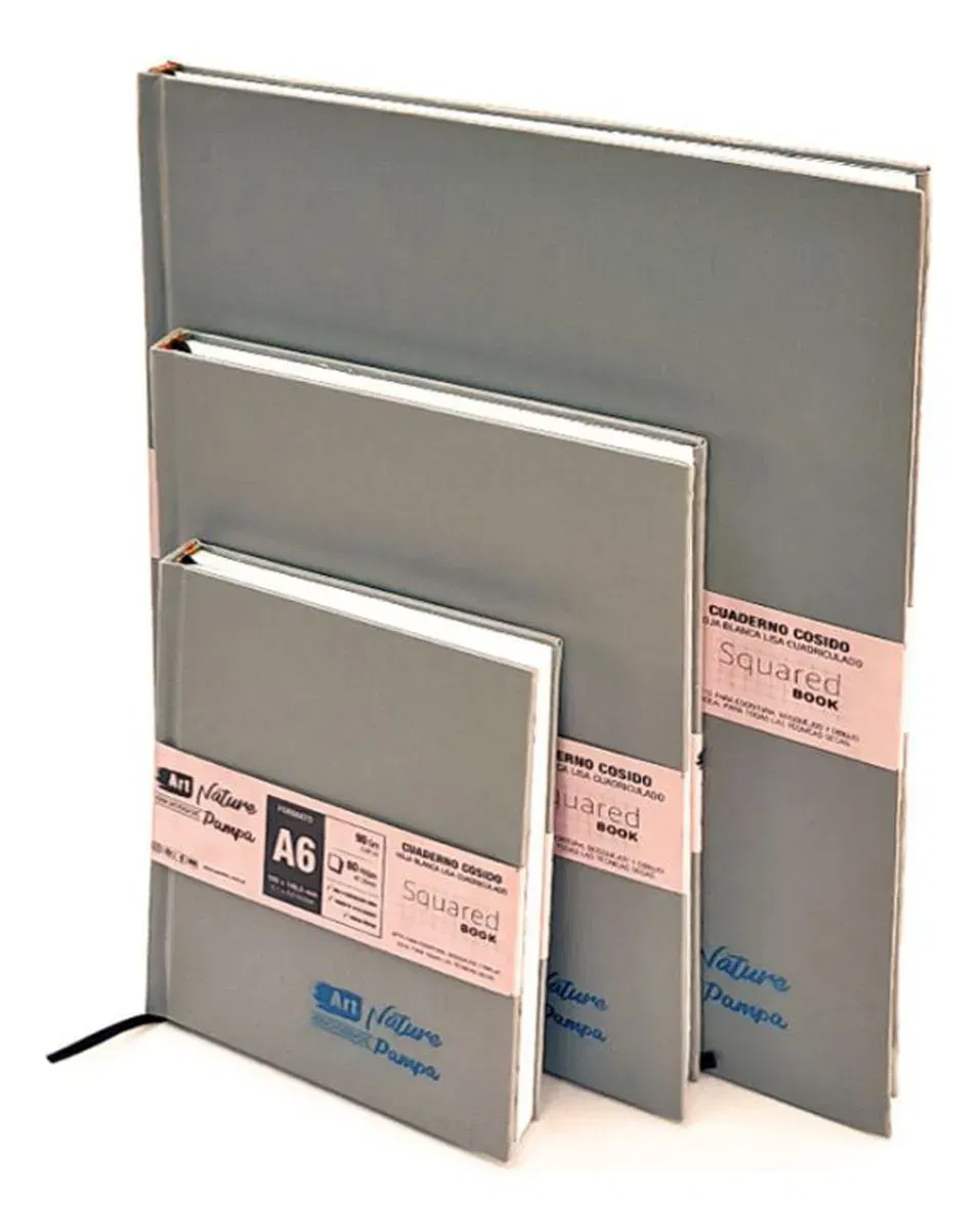 Cuaderno Línea Pampa de marca Art Nature by Plantec están fabricados bajo estrictas normas de calidad. Esta línea premium de cuadernos cosidos están fabricados íntegramente a mano de manera “tradicional” dando así un acabado superior a otros métodos. El papel cuadriculado de 90 grs. no contiene cloro ni ácidos por lo que es muy resistente al envejecimiento. Su costura y terminación en la cubierta demuestran calidad y finura. Son sumamente resistentes por lo que incluso se puede limpiar la cubierta con un paño húmedo. Se puede hacer uso de varias técnicas, en las cuales se sugiere que sean dentro de las llamadas “técnicas secas”. Apto para escritura, bosquejos y dibujo. Admite lápiz, tinta, pastel, grafito, crayón, marcador al agua, bolígrafo. Sus tres formatos A6 – A5 y A4 dan al usuario libertad para llevarlo donde guste y así tomar notas – dibujar – pintar – etc. en cualquier momento.