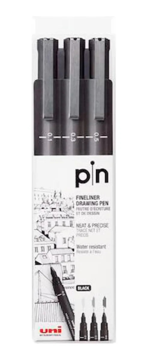 Uni Pin 200 Black Tinta Pigmentada X 3 Unidades A