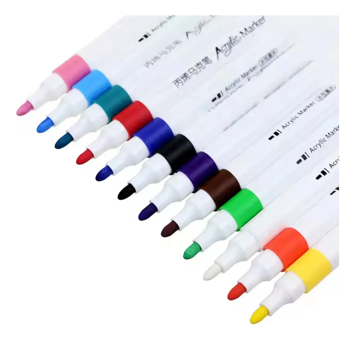 Cada marcador cuenta con tinta acrílica de alta calidad, que se adhiere fácilmente a hojas y cartulinas, garantizando colores vibrantes y duraderos. Su punta redonda permite un grosor de trazo de aproximadamente 1.8 mm, lo que los hace versátiles para detalles finos o áreas más amplias.