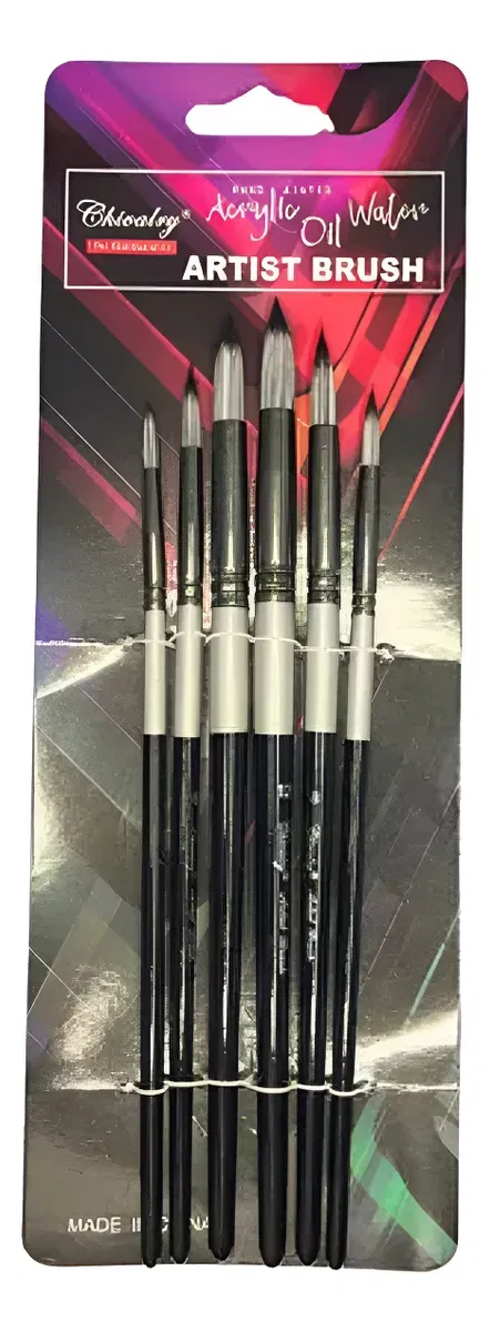 Descubre la precisión y versatilidad que ofrece el set de 6 pinceles redondos Chivalry de Mencho Librería, diseñado especialmente para artistas que trabajan con óleo y acrílico. Cada pincel cuenta con cerdas sintéticas de alta calidad, que garantizan una aplicación uniforme y un acabado impecable en cada trazo. Su forma redonda permite crear detalles finos y matices sutiles, ideales para técnicas de pintura que requieren precisión.