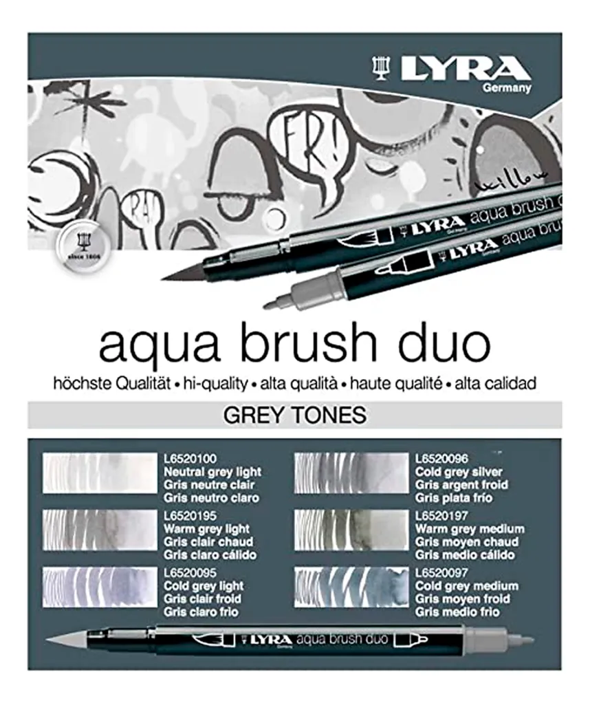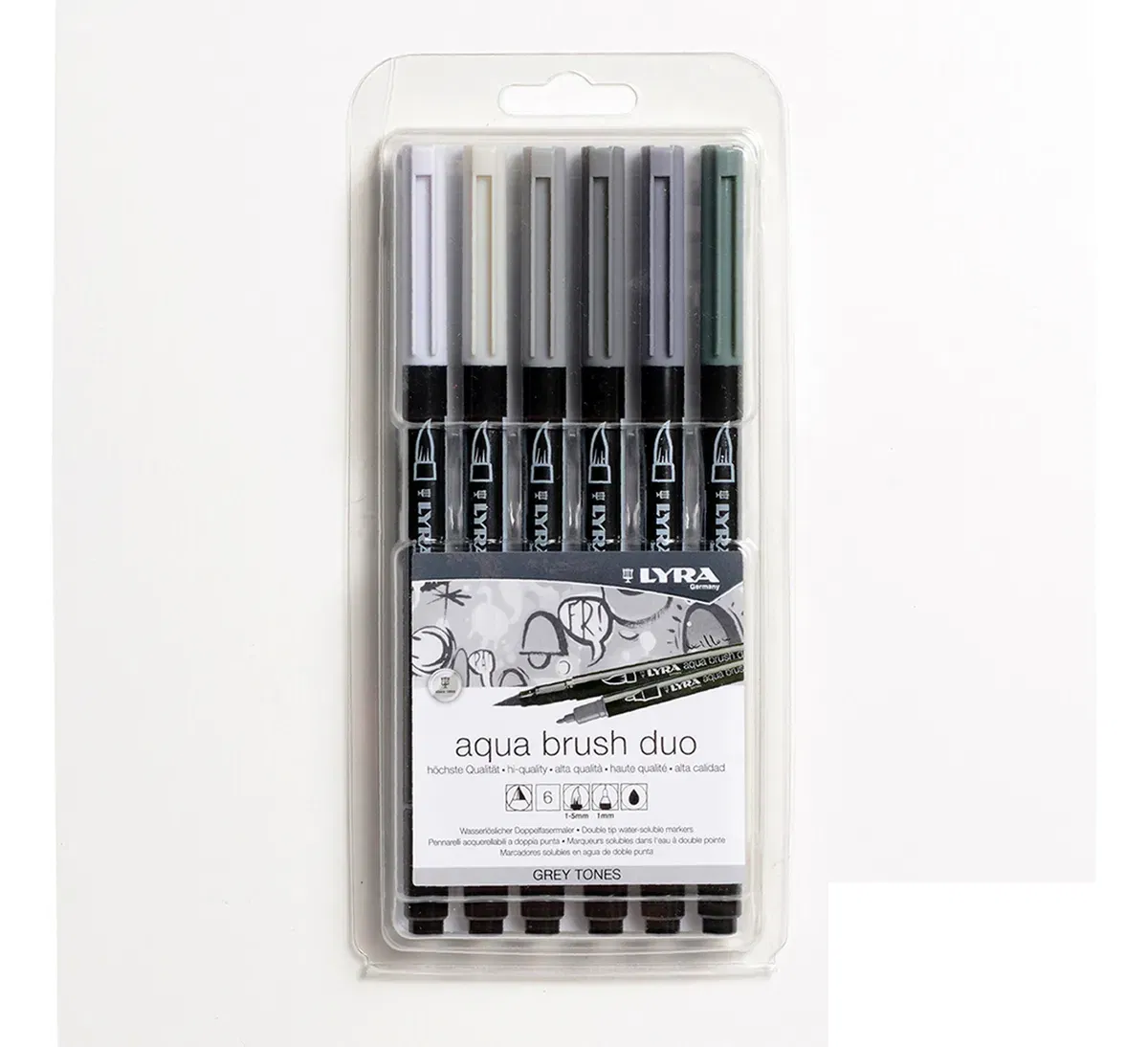 -MARCADORES AQUARELABLES LYRA AQUABRUSH DUO TONOS GRIS