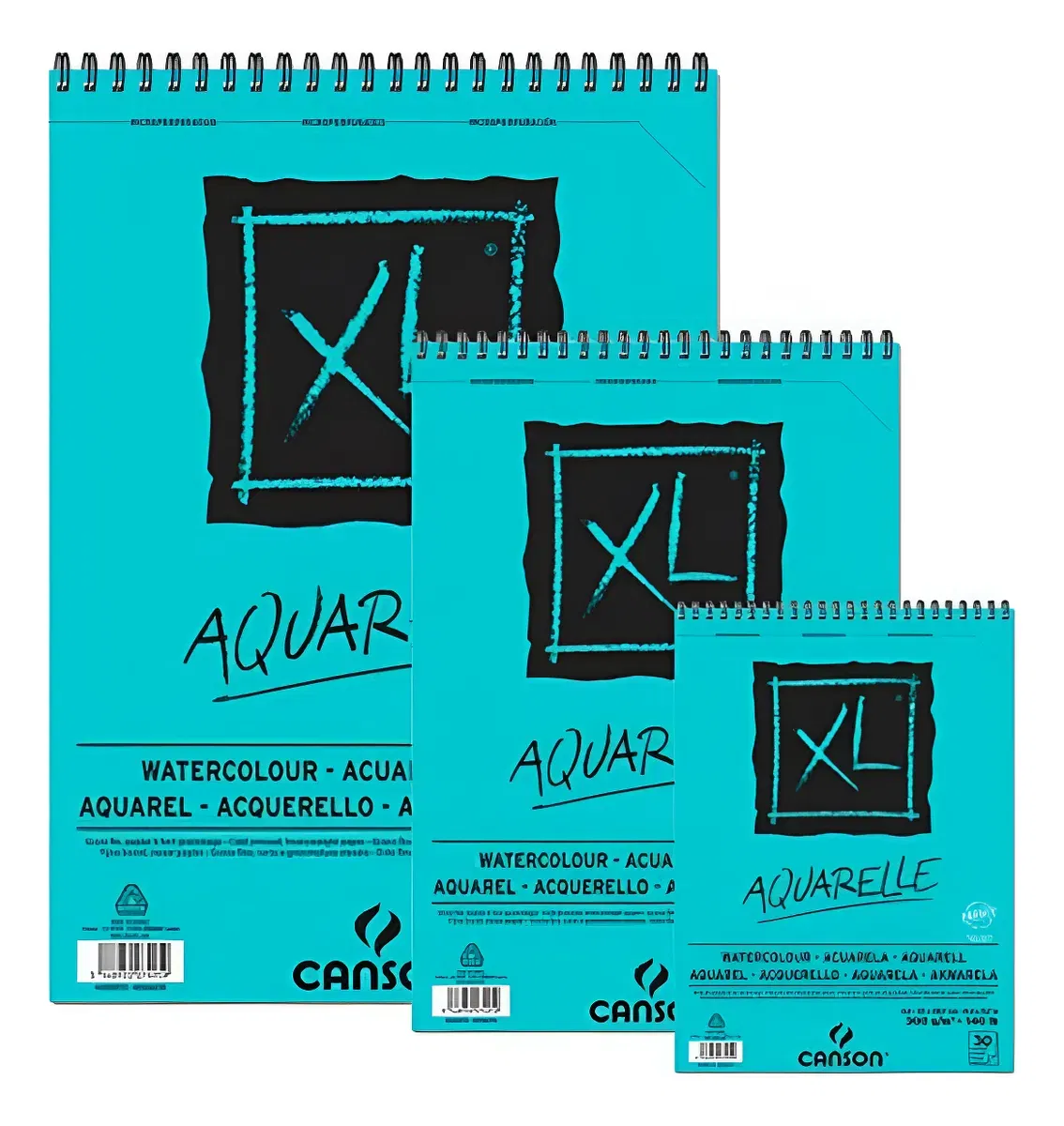 - Block con espiral de 20 hojas A5 de 300 grs. de papel de grano medio adecuado para técnicas puras o mixtas que usen acuarela, pasteles, acrílicos o lápiz. Cualquier cosa es posible con este álbum todo terreno