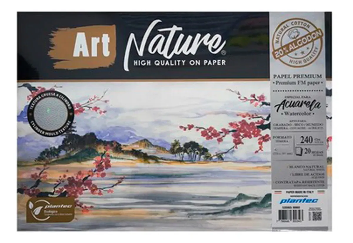 ART NATURE Artístico es un papel ideal para todas las técnicas por su gran performance de uso. Se trata de un genuino papel Mix Media, por su gran resistencia al trazado y borrado intenso y reiterado. Es el papel más utilizado para el dibujo lineal y artístico, ya que realza la aplicación de todos los elementos de escritura y pintura. No se utilizan ácidos ni cloro para su fabricación, lo que lo hace resistente al envejecimiento sin amarilleos por el paso del tiempo. Multitécnicas : acuarela – acuarelable, lápiz, tintas, pasteles, marcadores e impresión en offset, acrílico y pinturas. apto para gra