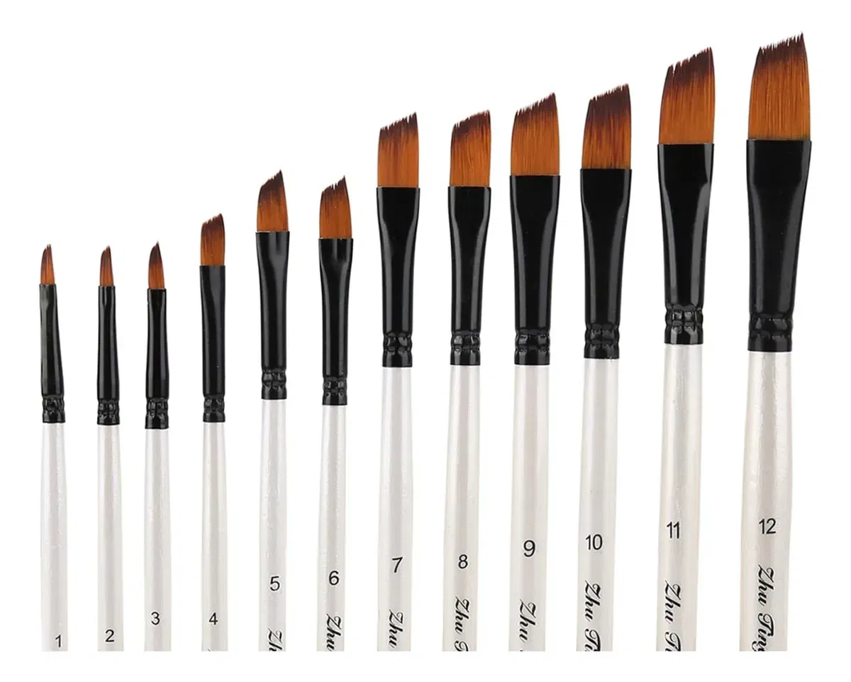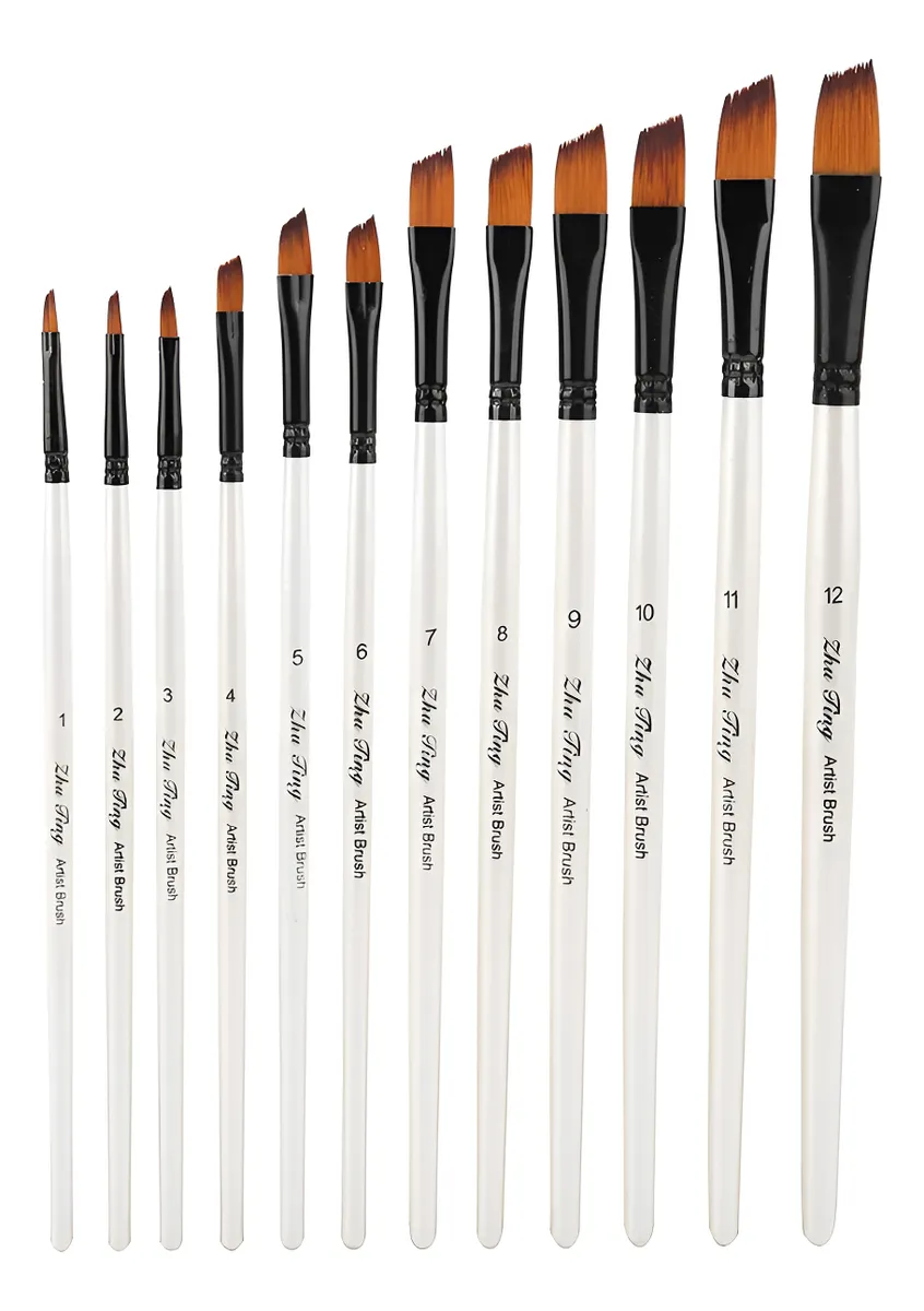- 12 PINCELES CHATO DE FIBRA ESPECIAL NUMEROS 1,2,3,4.5,6,7,8,9,10,11,12.