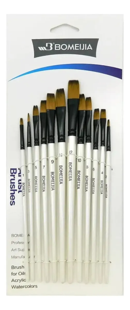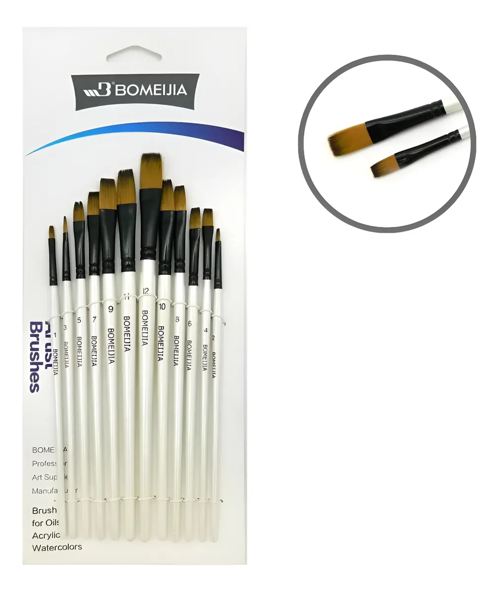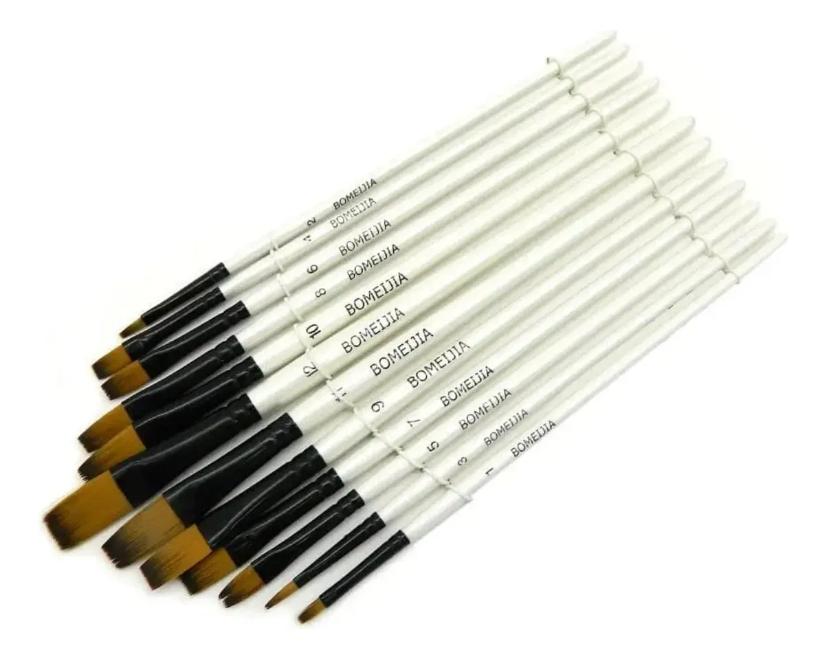 Set De 12 Pinceles Sintéticos Chatos De Alta Calidad