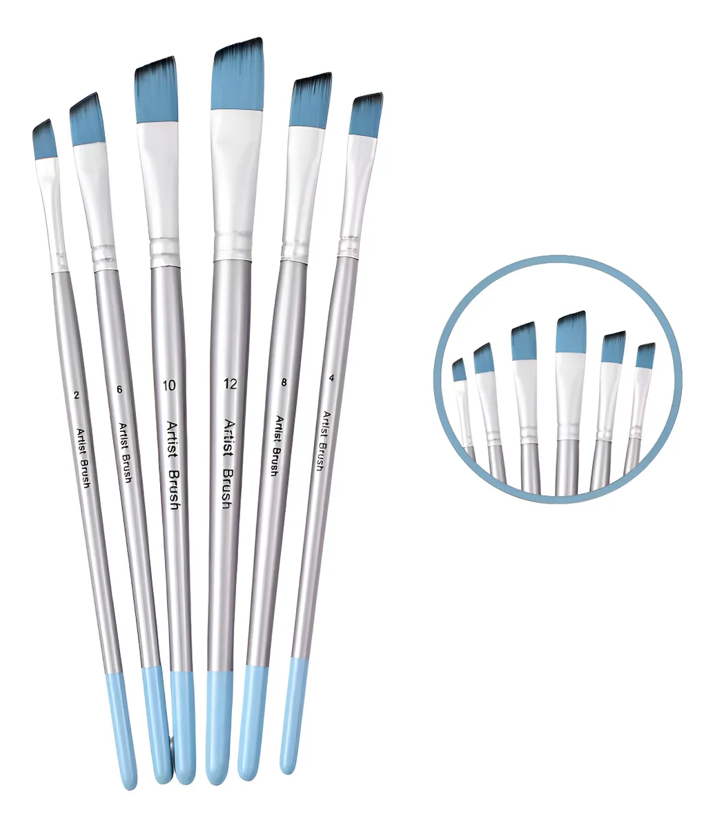 Juego De 6 Pinceles Biselados De Pintura Artistas Celeste