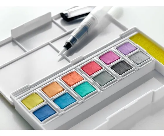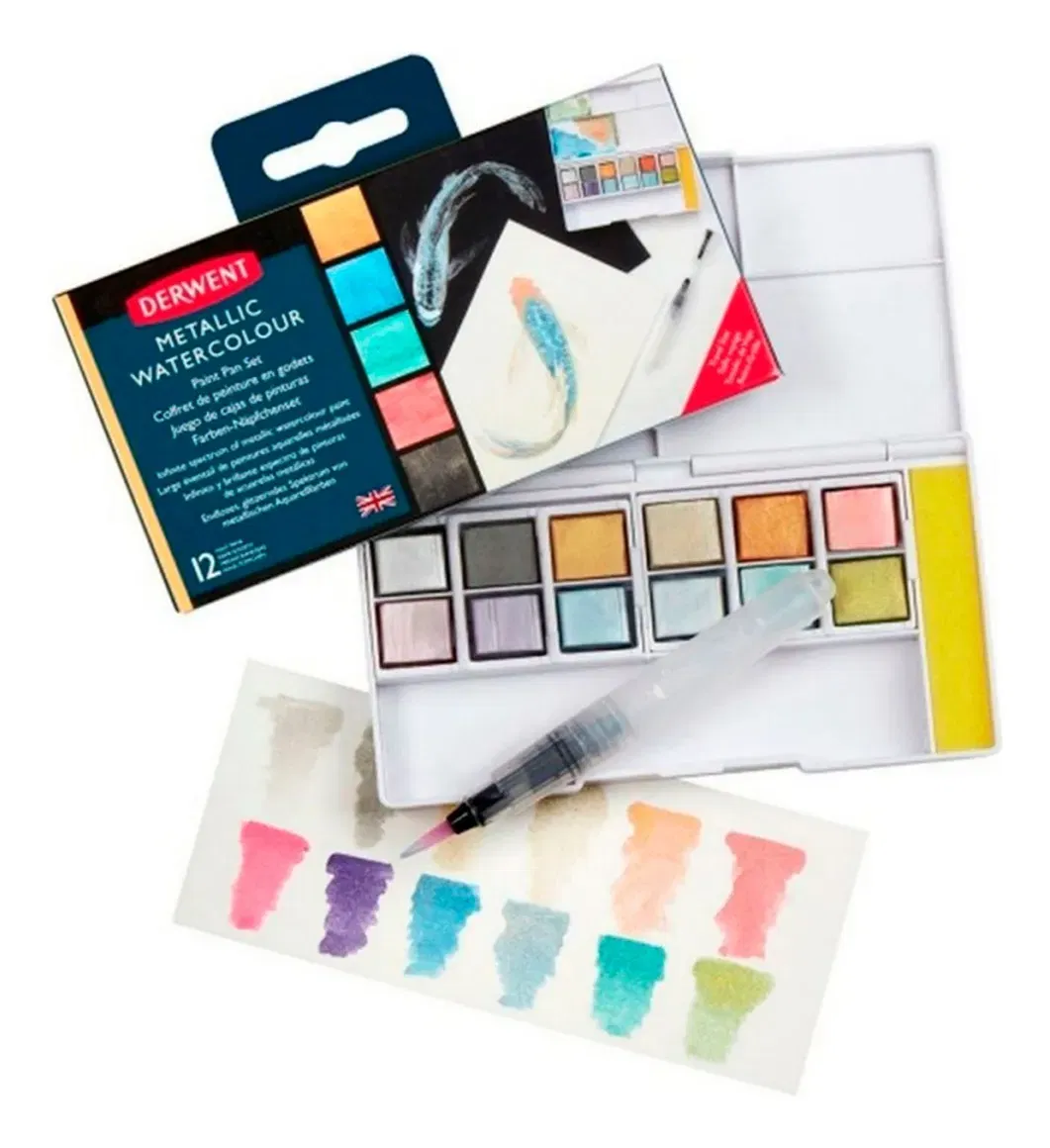Acuarelas Derwent Inktense Set x 12 Colores Metalizados + Pincel + Espoja !