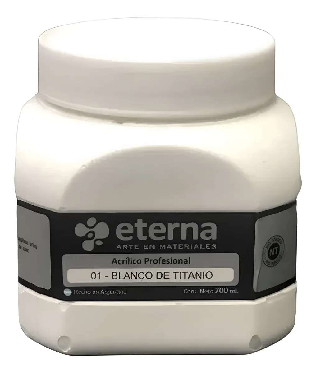 El Acrílico Profesional Línea Estudio Eterna es una pintura especial para pintar sobre bastidor entelado, y papeles especiales para pintura. Si es necesario debe diluirse con Barniz y Diluyente Eterna que es el producto adecuado para no alterar los niveles de calidad. Es de viscosidad alta ideal para crear texturas o trabajar con técnicas de espatulado. Nuestro acrílico está elaborado con altos porcentajes de resina acrílica pura y pigmentos muy luminosos, lo que genera superficies satinadas y de colores inalterables en el tiempo. La definimos línea Profesional Estudio por su excelente respuesta a las mezclas de color y rendimiento adecuado. Producto para uso artístico. La utilización por niños debe ser supervisada por un adulto. • Mencho Libreria Técnica y Artística • Ubicados en el barrio de abasto, a tres cuadras del shopping ofrecemos productos de primera calidad en artículos de librería al mejor precio. * Su compra esta protegida por Mercado Pago oferte sin miedo * _______________________________________________________________ • Medios de transporte cercanos • - Colectivos: 64 99 106 109 111 188 - Lineas de SUBTE: Linea B y D - Tren Sarmiento estación Once _______________________________________________________________ • Formas de entrega • • ENVÍOS A TODO EL PAÍS • • Envíos en CABA y GBA por moto o mensajería • Mercado Envíos • Por correo OCA • Por Micro o Expresos _______________________________________________________________ • Formas de pago • • Mercado Pago • Mercado Point