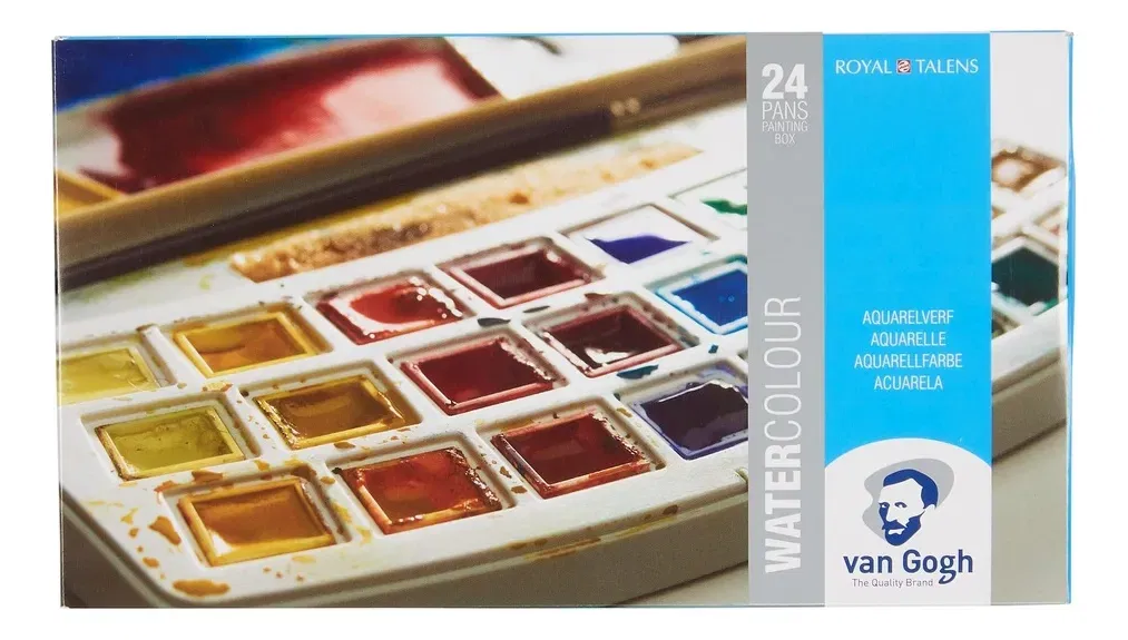 La funda Van Gogh Talens Aquarela para tabletas presenta 24 colores vibrantes y luminosos. Con una alta pigmentación, la pintura de acuarela Van Gogh es resistente a la luz y mantiene la integridad del color durante un período prolongado, incluso cuando está muy diluida. La viscosidad uniforme de Aquarela Van Gogh Talens permite mezclarla o diluirla fácilmente en agua, logrando incluso los matices y tonalidades más suaves. Proporciona pinceladas suaves con un delicado efecto de sombreado. Ideal para profesionales y estudiantes.