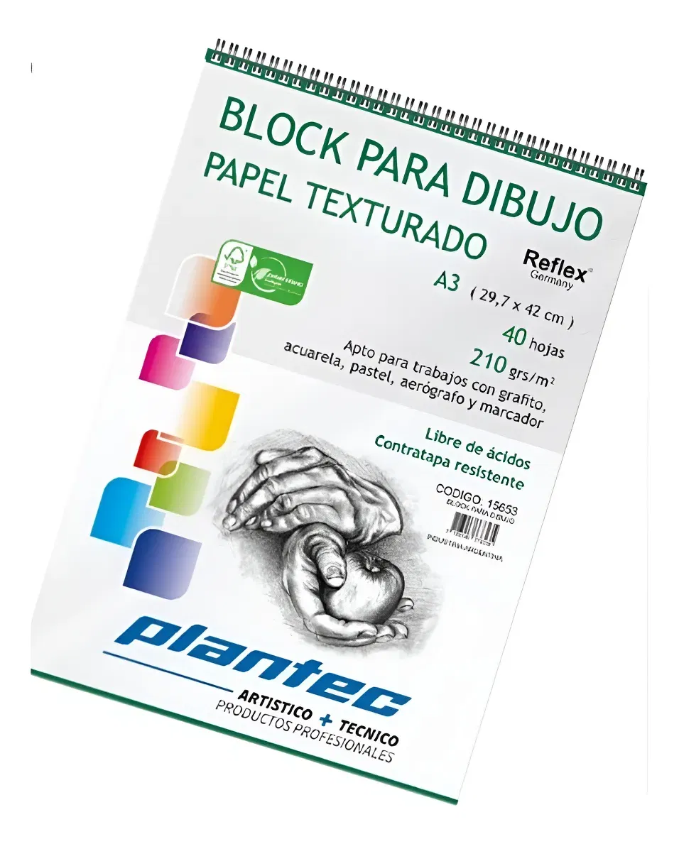 Block Para Dibujo 210g A3 Plantec 40 Hojas Texturado
