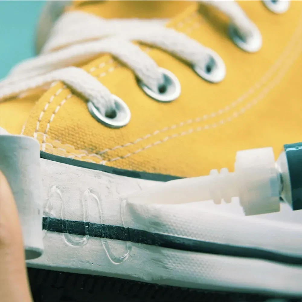 Adhesivo para zapatillas de consistencia tipo gel, transparente, de secado rápido, resistente y muy fácil de usar.
