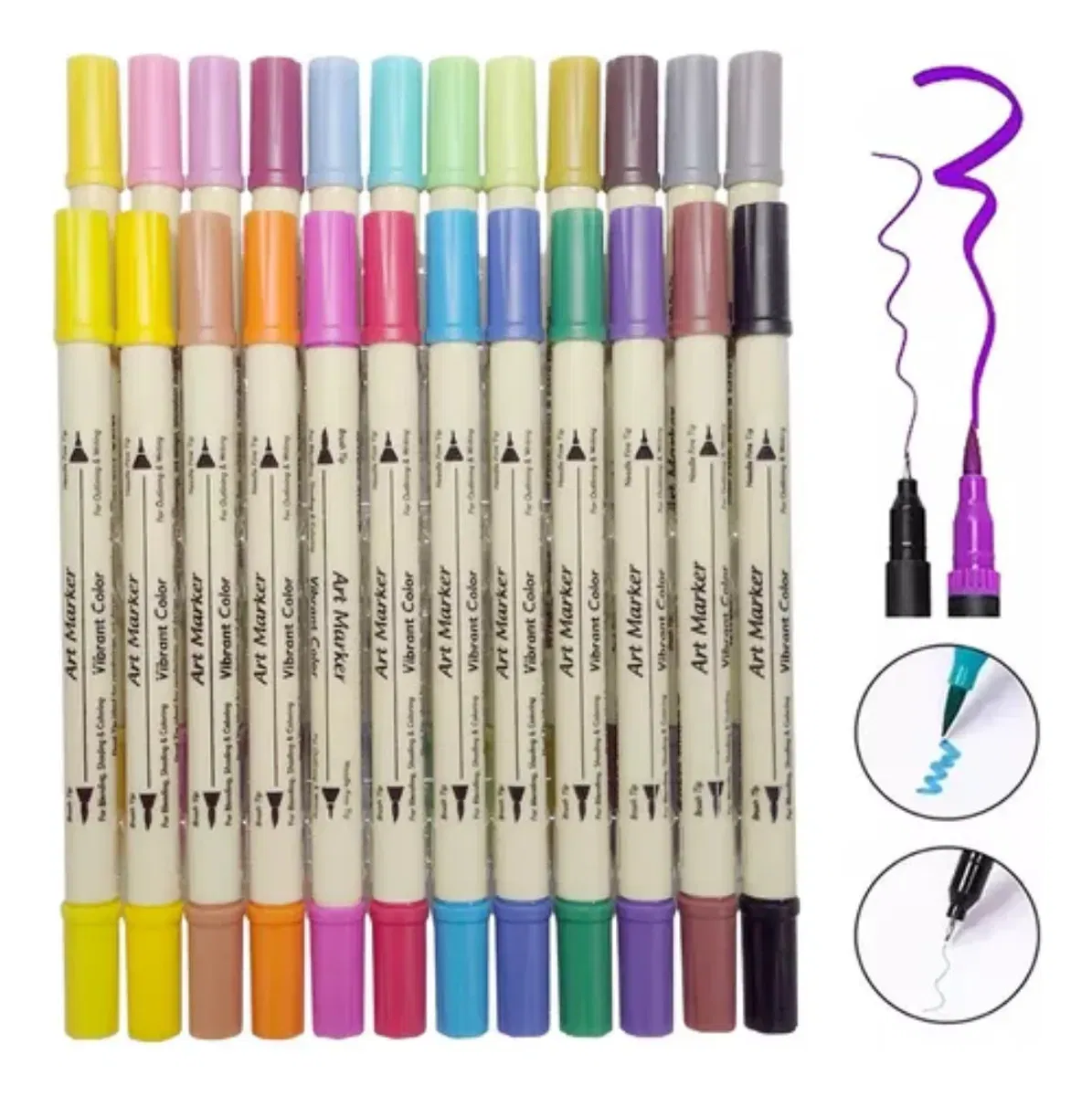 -24 colores brillantes de pigmentos vibrantes, doble punta.