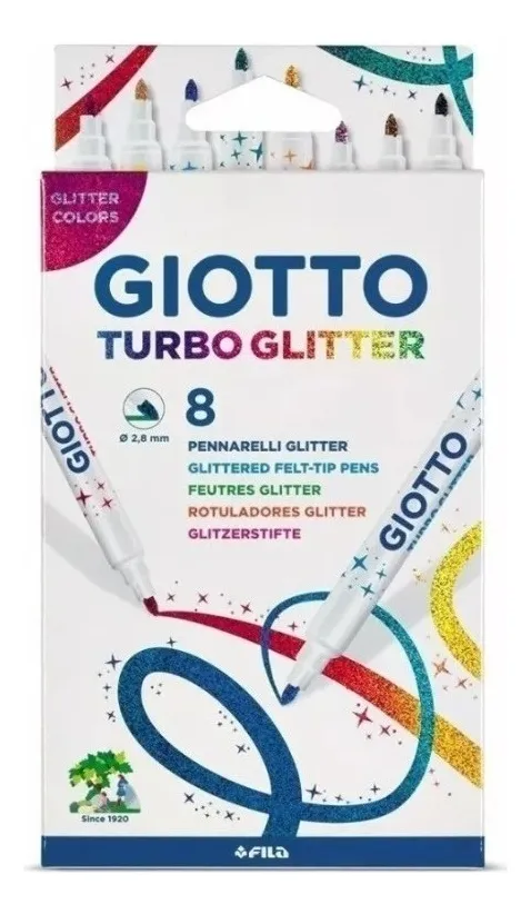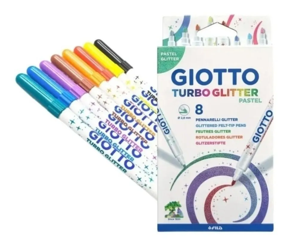 Descubre la magia de los Marcadores Giotto Turbo Color Glitter X 8 Con Brillo, perfectos para dar vida a tus creaciones. Estos marcadores escolares cuentan con una tinta especial con brillos en 8 diversos colores, ideales para añadir un toque de fantasía a tus dibujos. Su capuchón ventilado garantiza seguridad, mientras que la punta media, que no se hunde, permite un trazo medio y preciso. Fabricados con un cuerpo de plástico resistente, son a base de agua y lavables de manos y tejidos, facilitando la limpieza. Presentados en una práctica caja, son perfectos para usar en papel y otras superficies recomendadas. ¡Deja volar tu imaginación con Giotto!