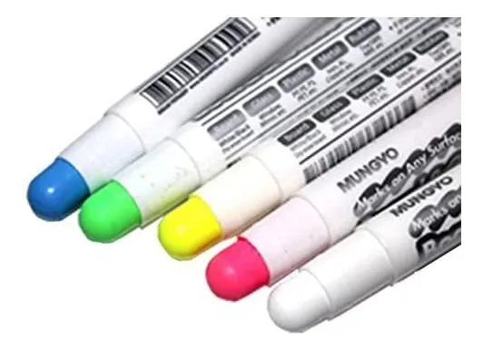 Marcador seco estilo tiza, trazo grueso. Buena adhesión pero fácil de borrar. Para pizarras y materiales no porosos como el vidrio y metales. Varios colores disponibles.