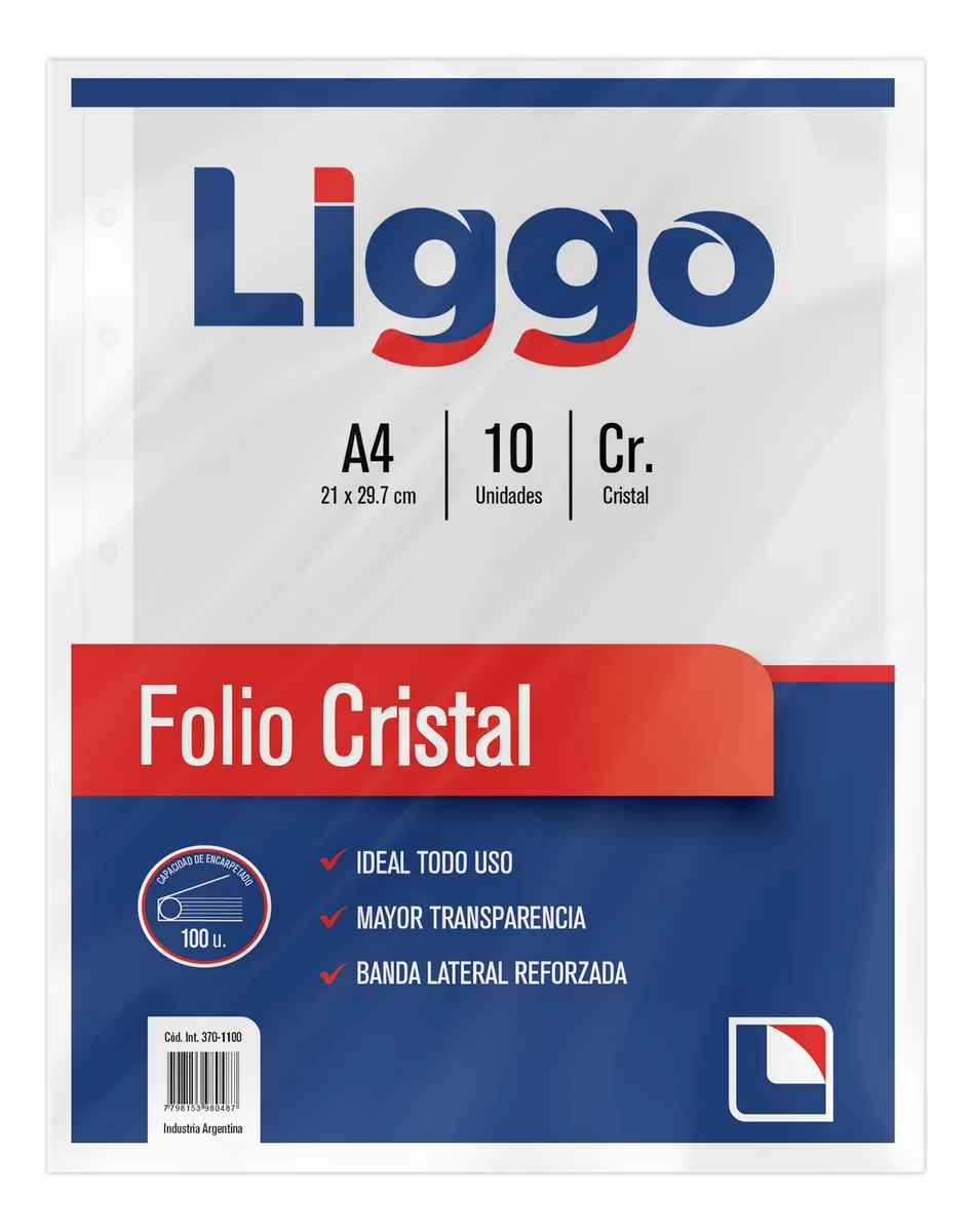 Los Folios Liggo Cristal Reforzados Borde Blanco A4 son ideales para proteger y organizar tus documentos importantes. Con una medida estándar de 21cm x 29.7cm, estos folios están fabricados en material reciclado, lo que los hace una opción ecológica y responsable. Su espesor de 40 µm garantiza durabilidad y resistencia. La banda lateral reforzada con 11 agujeros permite una fácil inserción en carpetas y archivadores, asegurando que tus documentos se mantengan en perfecto estado. Estos folios son más nítidos y luminosos, ofreciendo una mayor transparencia para una visualización clara de tus documentos. Cada paquete contiene 10 unidades, perfectas para uso escolar, profesional o personal. Marca Liggo, modelo A4 Cristal. Condición del ítem: Nuevo.