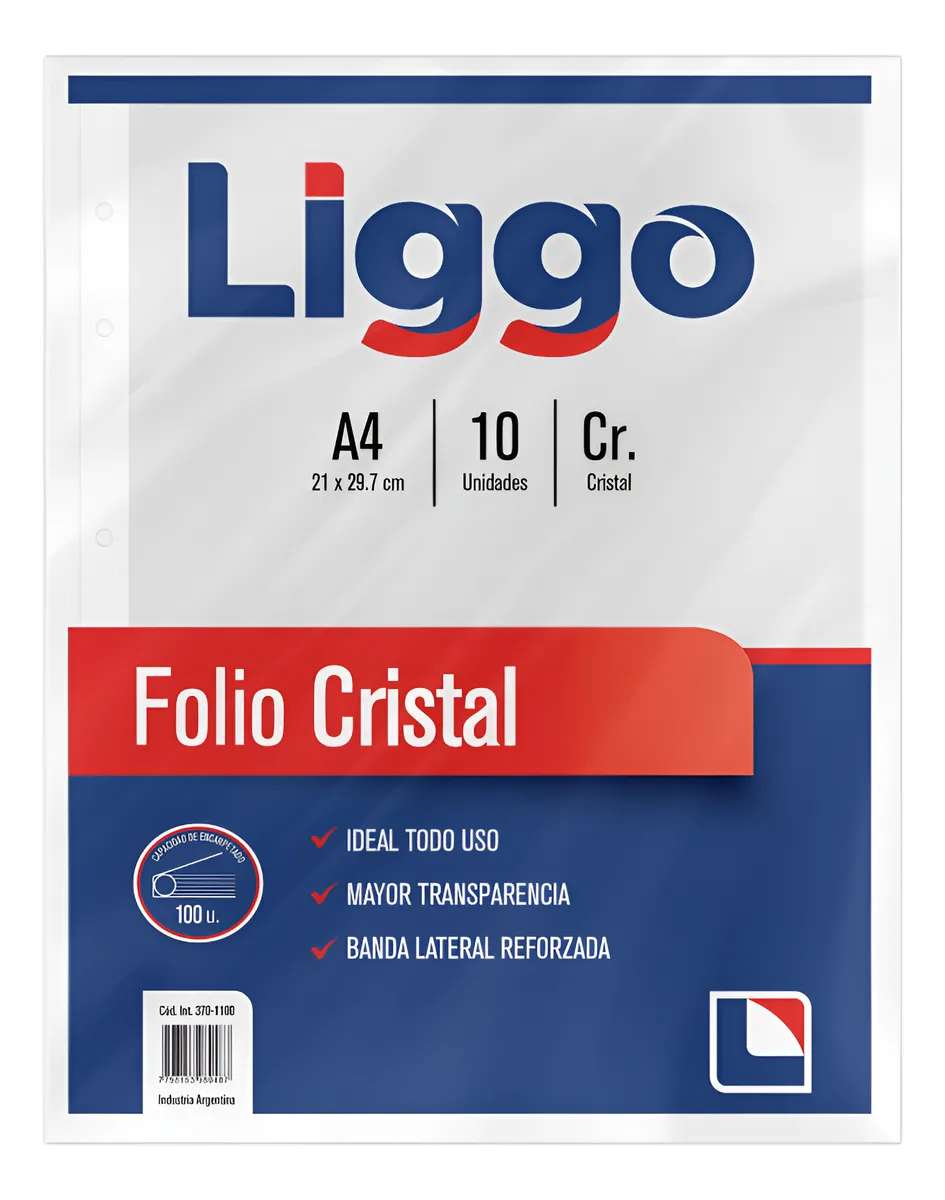 Los Folios Liggo Cristal Reforzados Borde Blanco A4 son ideales para proteger y organizar tus documentos importantes. Con una medida estándar de 21cm x 29.7cm, estos folios están fabricados en material reciclado, lo que los hace una opción ecológica y responsable. Su espesor de 40 µm garantiza durabilidad y resistencia. La banda lateral reforzada con 11 agujeros permite una fácil inserción en carpetas y archivadores, asegurando que tus documentos se mantengan en perfecto estado. Estos folios son más nítidos y luminosos, ofreciendo una mayor transparencia para una visualización clara de tus documentos. Cada paquete contiene 10 unidades, perfectas para uso escolar, profesional o personal. Marca Liggo, modelo A4 Cristal. Condición del ítem: Nuevo.
