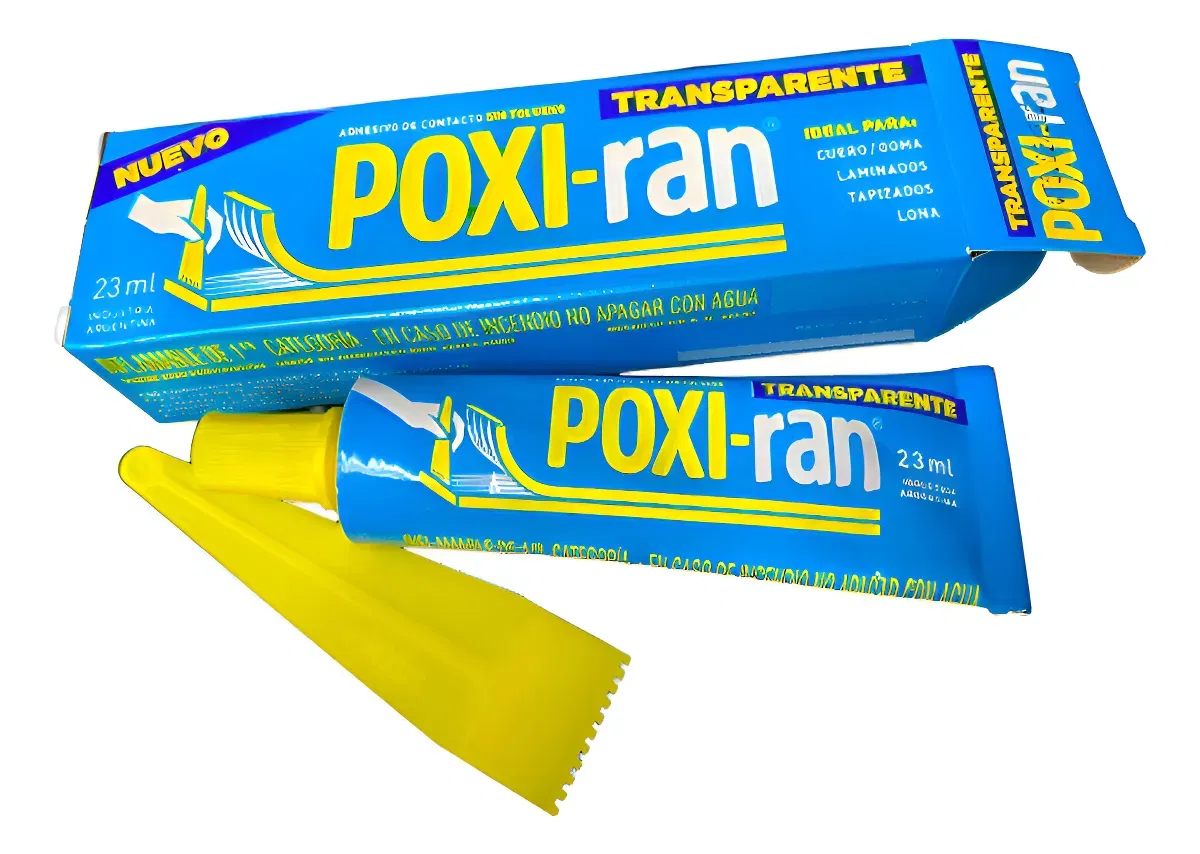 Poxi-ran Adhesivo de contacto TRANSPARENTE 23ml es la solución ideal para tus proyectos de manualidades y reparaciones. Este pegamento de contacto es perfecto para una amplia variedad de superficies, incluyendo cuero, goma, laminados, tapizados y lona, garantizando un acabado transparente que se integra perfectamente con tus materiales.