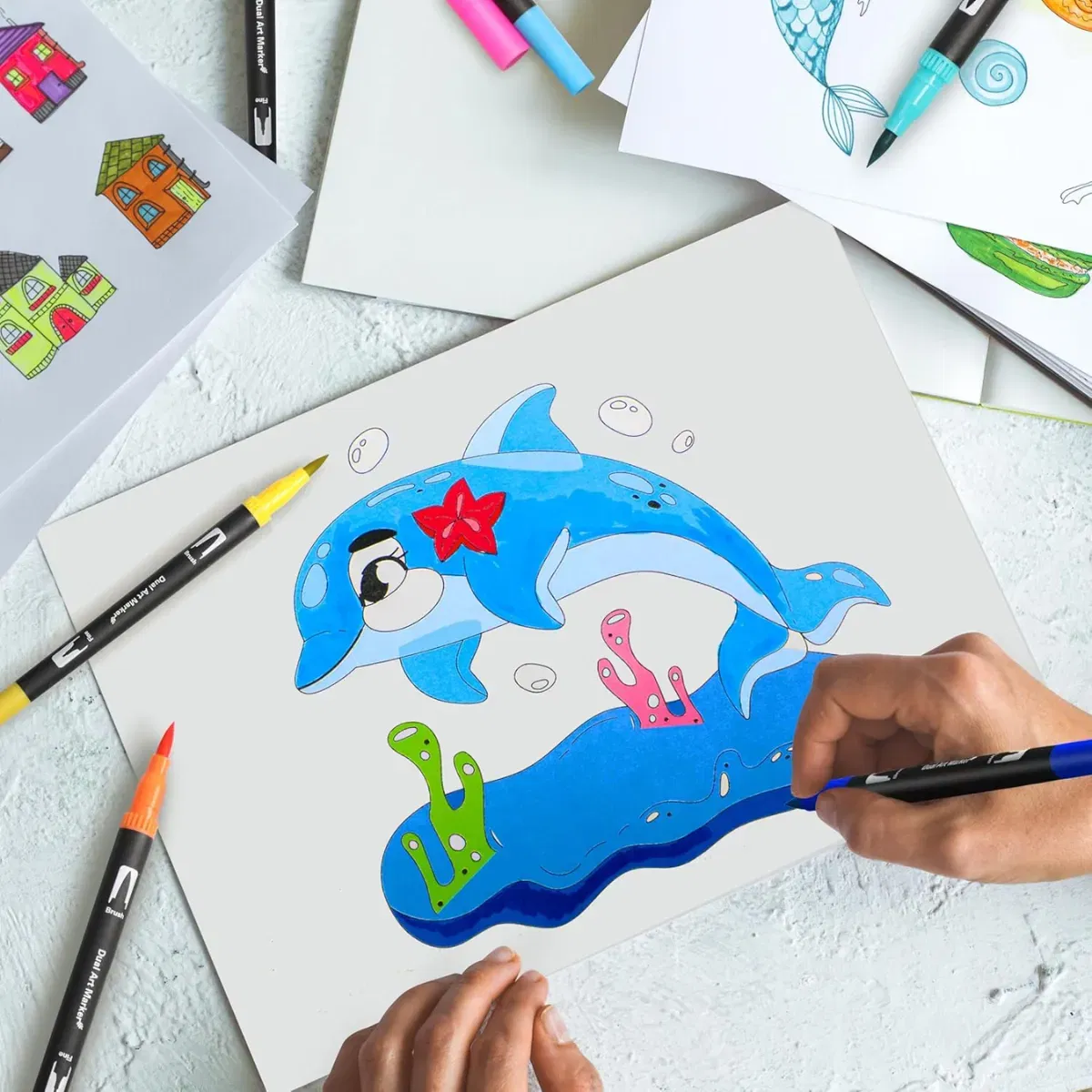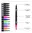 El estuche plástico que los acompaña no solo facilita su transporte, sino que también asegura que cada marcador esté siempre a mano. Fabricados con un cuerpo de plástico ligero, cada marcador pesa solo 1 g, lo que los hace cómodos de usar durante largas sesiones de trabajo. La tinta de alta calidad se adhiere perfectamente a hojas y cartulinas, garantizando resultados duraderos y vibrantes.