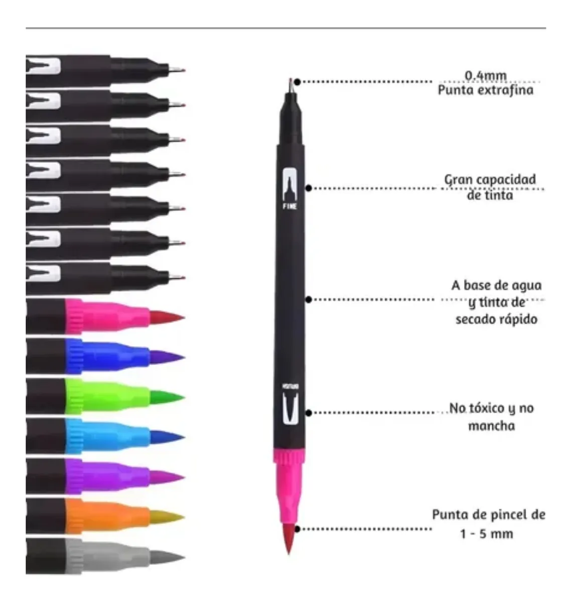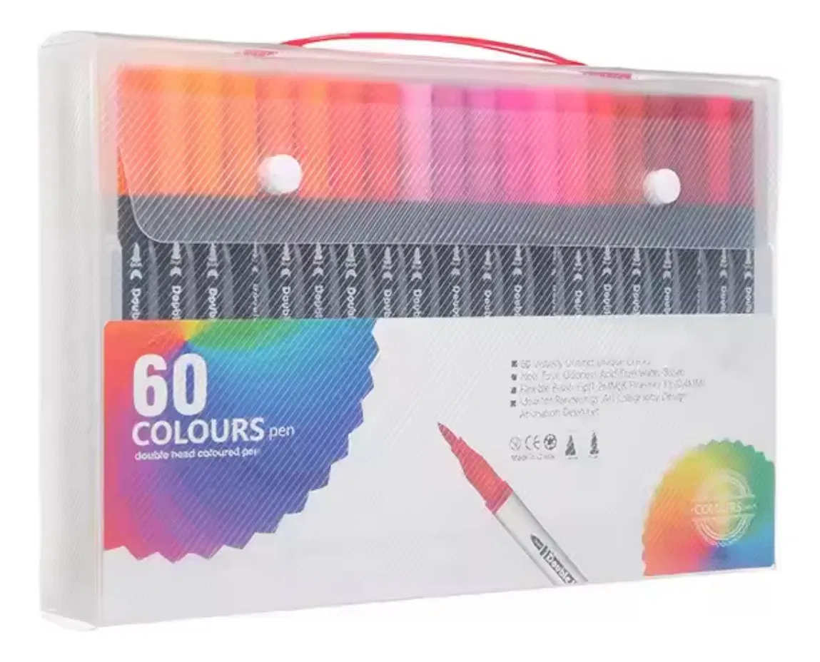 Los marcadores de doble punta Mencho son la herramienta ideal para artistas, estudiantes y amantes del lettering. Con un total de 60 colores vibrantes, estos marcadores permiten una amplia gama de posibilidades creativas, desde dibujos detallados hasta diseños llamativos. Su diseño de doble punta ofrece versatilidad, con un grosor de trazo de 0.4 mm para líneas finas y 1.0 mm para trazos más gruesos, adaptándose a diferentes estilos y técnicas.