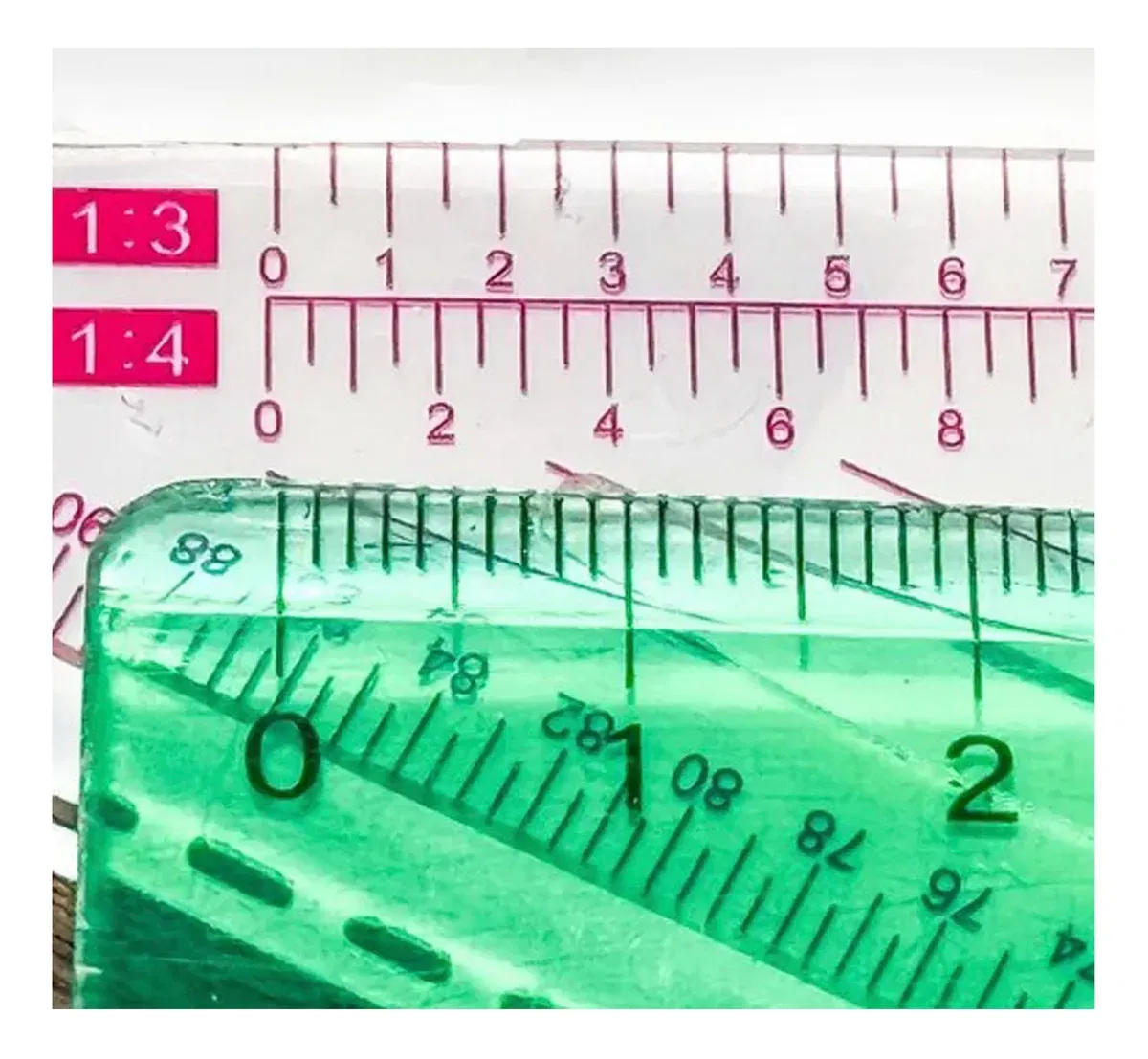 Tiene estampado angulos rectos a escala y transportador para medir ángulos.