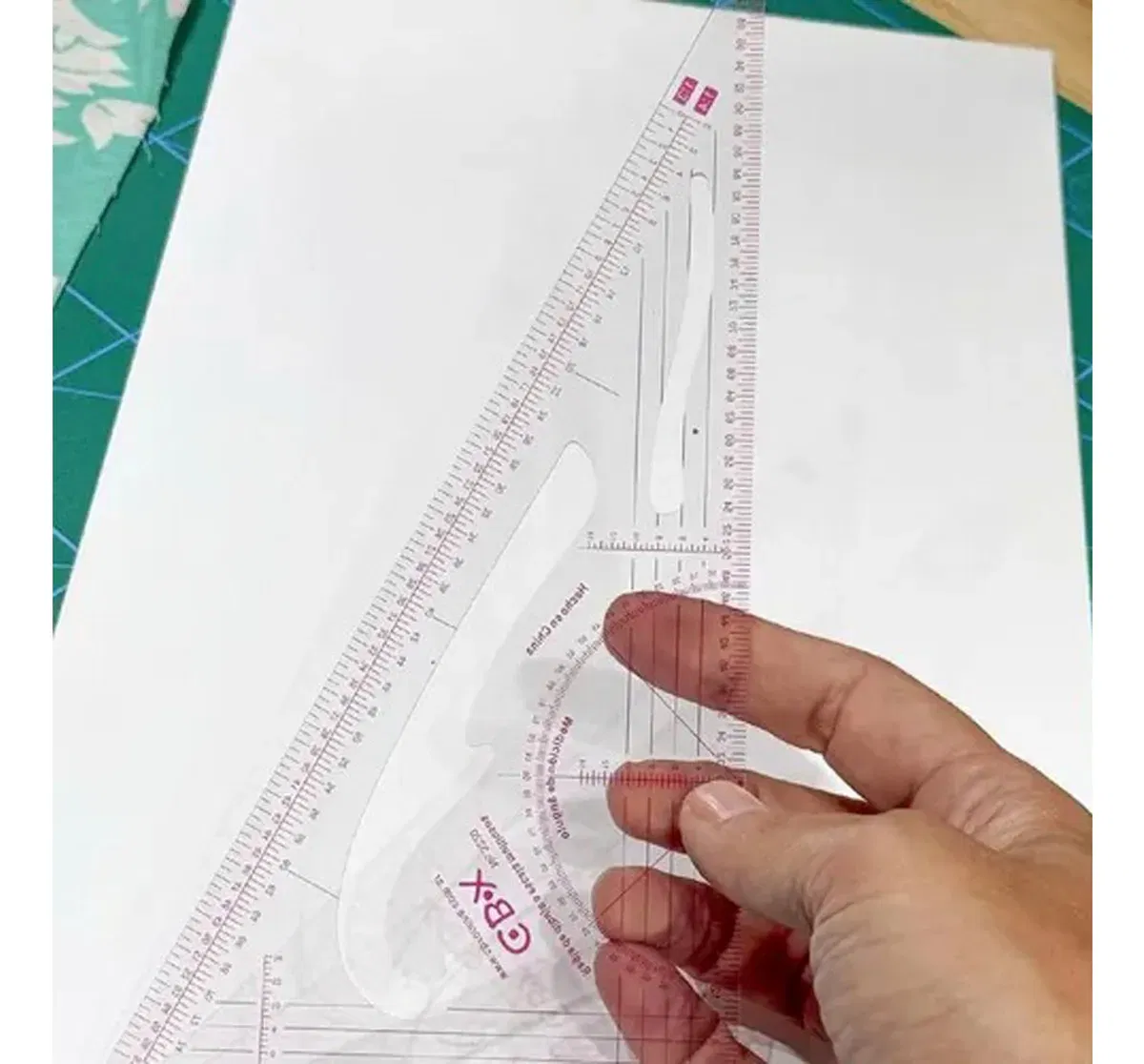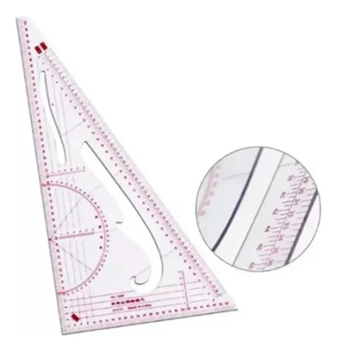 Es la que se utiliza para obtener patrones a distintas escalas, sus medidas estan en multiplo de 1:5, 1:4 y 1:3 . Los angulos rectos están en escala de 1:5 (1 cm de la regla son 5 cm en escala real). Tiene en su interioir calado pequeñas curvas para moldes pequeños, como la curva francesa o sable en la escala 1:5. En la parte del angulo tiene dos escalas más adicionales la 1:4 y la 1:3.