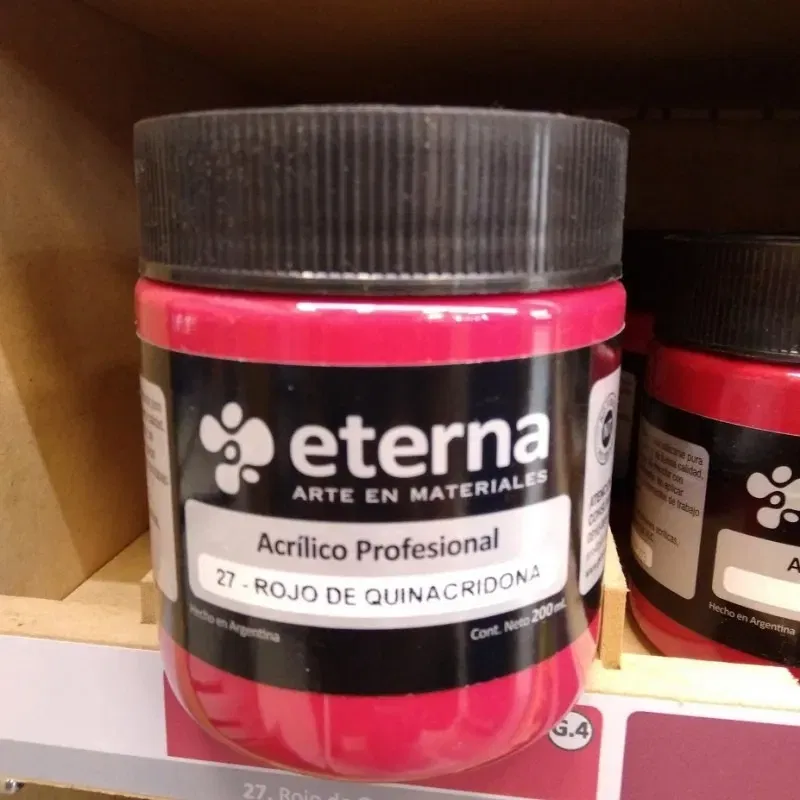 El Acrílico Profesional Línea Estudio Eterna es una pintura especial para pintar sobre bastidor entelado, y papeles especiales para pintura. Si es necesario debe diluirse con Barniz y Diluyente Eterna que es el producto adecuado para no alterar los niveles de calidad. Es de viscosidad alta ideal para crear texturas o trabajar con técnicas de espatulado. Nuestro acrílico está elaborado con altos porcentajes de resina acrílica pura y pigmentos muy luminosos, lo que genera superficies satinadas y de colores inalterables en el tiempo. La definimos línea Profesional Estudio por su excelente respuesta a las mezclas de color y rendimiento adecuado. Producto para uso artístico. La utilización por niños debe ser supervisada por un adulto. • Mencho Libreria Técnica y Artística • Ubicados en el barrio de abasto, a tres cuadras del shopping ofrecemos productos de primera calidad en artículos de librería al mejor precio. * Su compra esta protegida por Mercado Pago oferte sin miedo * _______________________________________________________________ • Medios de transporte cercanos • - Colectivos: 64 99 106 109 111 188 - Lineas de SUBTE: Linea B y D - Tren Sarmiento estación Once _______________________________________________________________ • Formas de entrega • • ENVÍOS A TODO EL PAÍS • • Envíos en CABA y GBA por moto o mensajería • Mercado Envíos • Por correo OCA • Por Micro o Expresos _______________________________________________________________ • Formas de pago • • Mercado Pago • Mercado Point